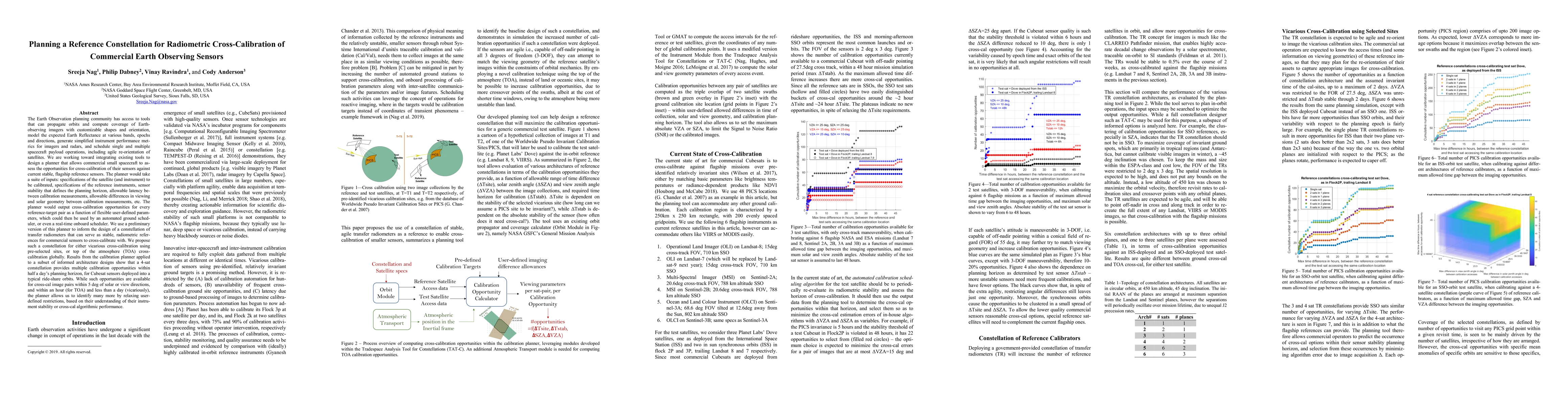 A planning tool for cross-calibration of commercial Earth observing sensors has been developed, enabling multiple calibration opportunities within a day for a 4-sat constellation, with potential applications for vicarious and top-of-atmosphere calibration globally.