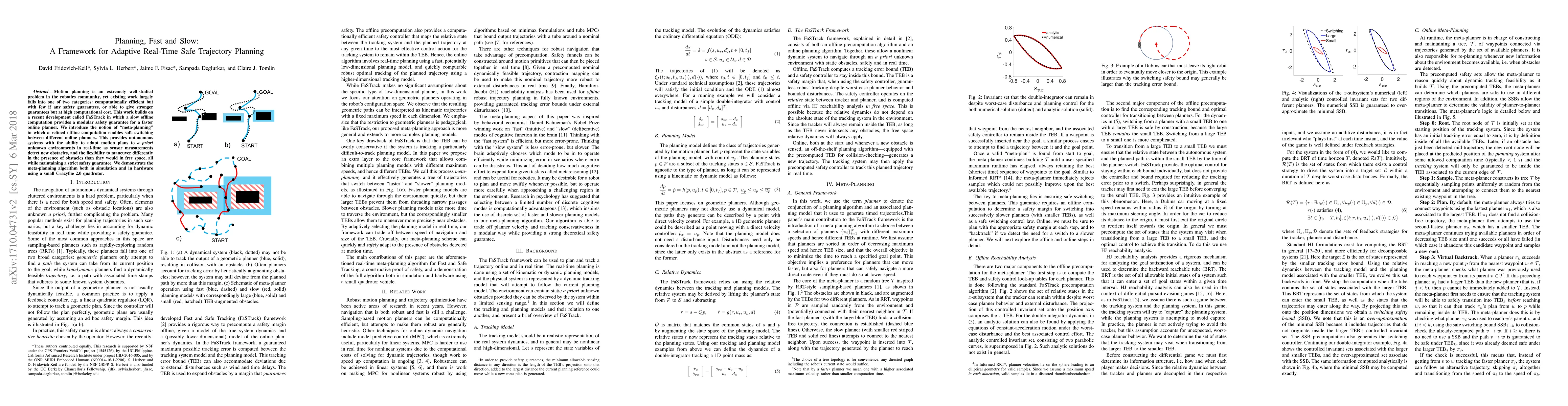 Motion planning is an extremely well-studied problem in the robotics community, yet existing work largely falls into one of two categories: computationally efficient but with few if any safety guarantees, or able to give stronger guarantees but at high computational cost. This work builds on a recent development called FaSTrack in which a slow offline computation provides a modular safety guarantee for a faster online planner. We introduce the notion of "meta-planning" in which a refined offline computation enables safe switching between different online planners. This provides autonomous systems with the ability to adapt motion plans to a priori unknown environments in real-time as sensor measurements detect new obstacles, and the flexibility to maneuver differently in the presence of obstacles than they would in free space, all while maintaining a strict safety guarantee. We demonstrate the meta-planning algorithm both in simulation and in hardware using a small Crazyflie 2.0 quadrotor.