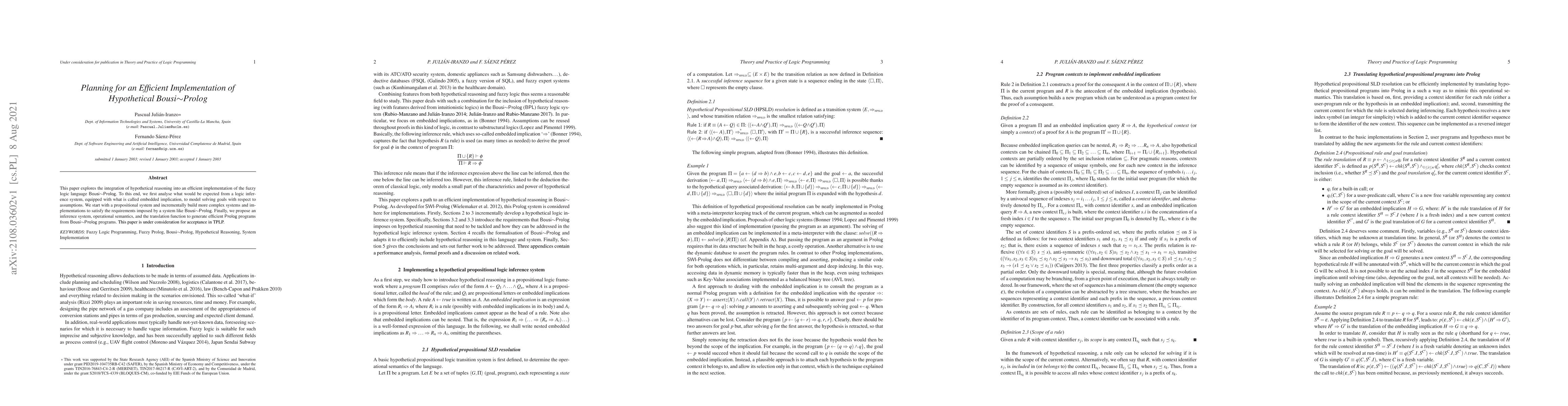 This paper investigates the integration of hypothetical reasoning into the efficient implementation of Bousi~Prolog, a fuzzy logic language. It proposes an inference system, operational semantics, and a translation function to generate optimized Prolog programs from Bousi~Prolog code.