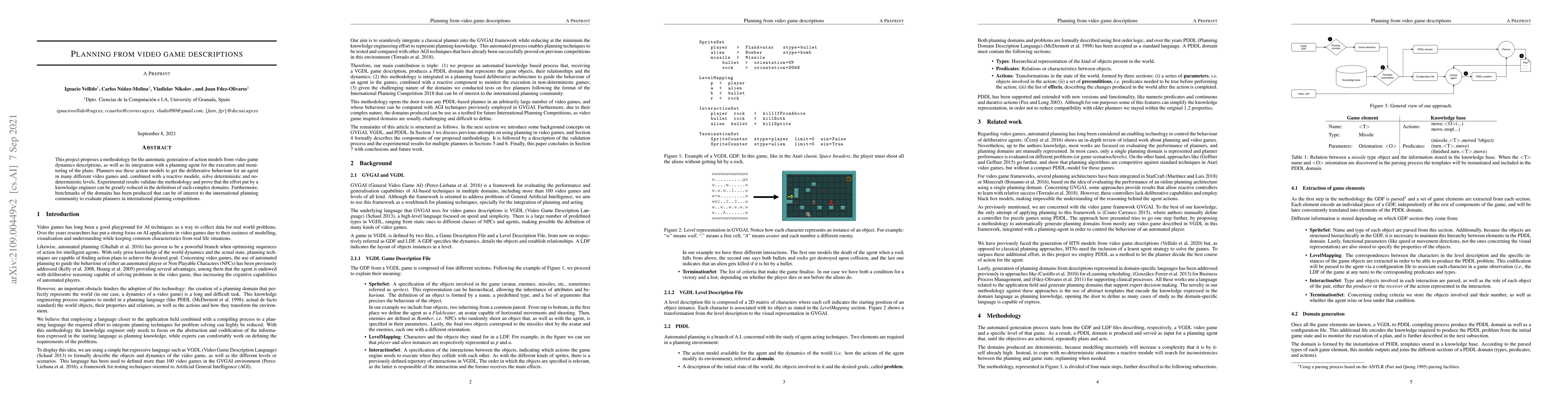 This research develops a methodology for automatically generating action models from video game descriptions and integrates them with a planning agent to execute and monitor plans. The approach significantly reduces the effort needed by knowledge engineers, and benchmarks are provided for international planning competitions.