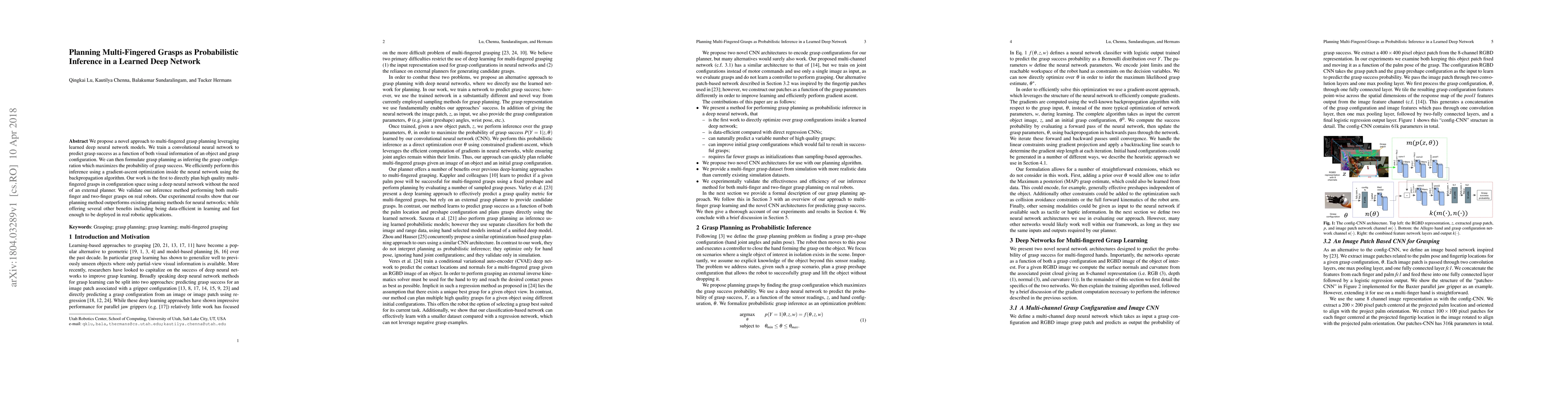 This paper introduces a deep neural network for planning multi-fingered grasps by inferring the grasp configuration that maximizes the probability of success, leveraging visual and configuration data. The method outperforms existing neural network planning methods and is efficient, fast, and suitable for real-time robotic applications.