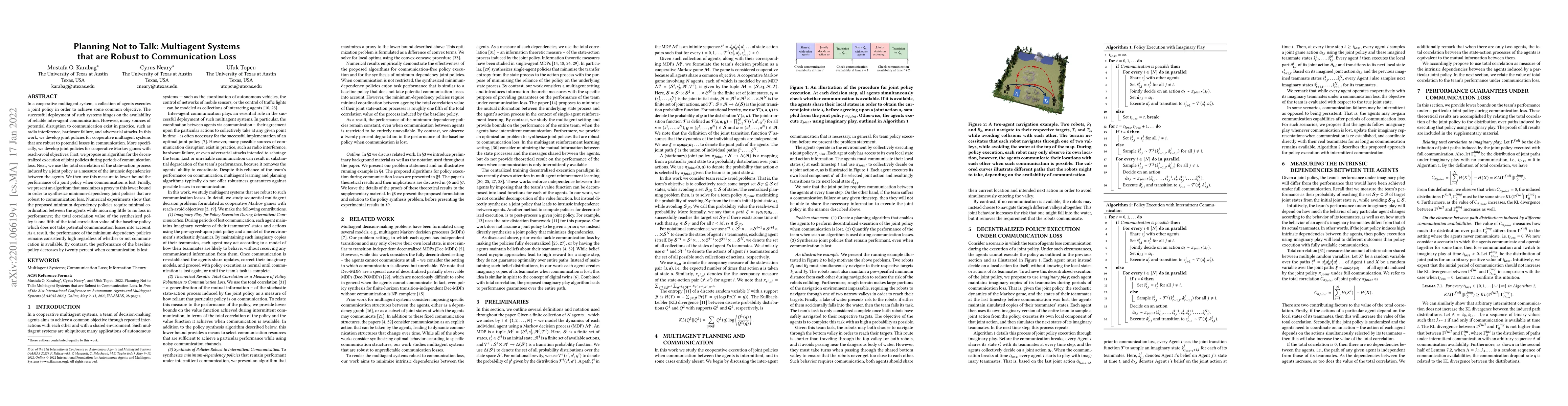 In a cooperative multiagent system, a collection of agents executes a joint policy in order to achieve some common objective. The successful deployment of such systems hinges on the availability of reliable inter-agent communication. However, many sources of potential disruption to communication exist in practice, such as radio interference, hardware failure, and adversarial attacks. In this work, we develop joint policies for cooperative multiagent systems that are robust to potential losses in communication. More specifically, we develop joint policies for cooperative Markov games with reach-avoid objectives. First, we propose an algorithm for the decentralized execution of joint policies during periods of communication loss. Next, we use the total correlation of the state-action process induced by a joint policy as a measure of the intrinsic dependencies between the agents. We then use this measure to lower-bound the performance of a joint policy when communication is lost. Finally, we present an algorithm that maximizes a proxy to this lower bound in order to synthesize minimum-dependency joint policies that are robust to communication loss. Numerical experiments show that the proposed minimum-dependency policies require minimal coordination between the agents while incurring little to no loss in performance; the total correlation value of the synthesized policy is one fifth of the total correlation value of the baseline policy which does not take potential communication losses into account. As a result, the performance of the minimum-dependency policies remains consistently high regardless of whether or not communication is available. By contrast, the performance of the baseline policy decreases by twenty percent when communication is lost.