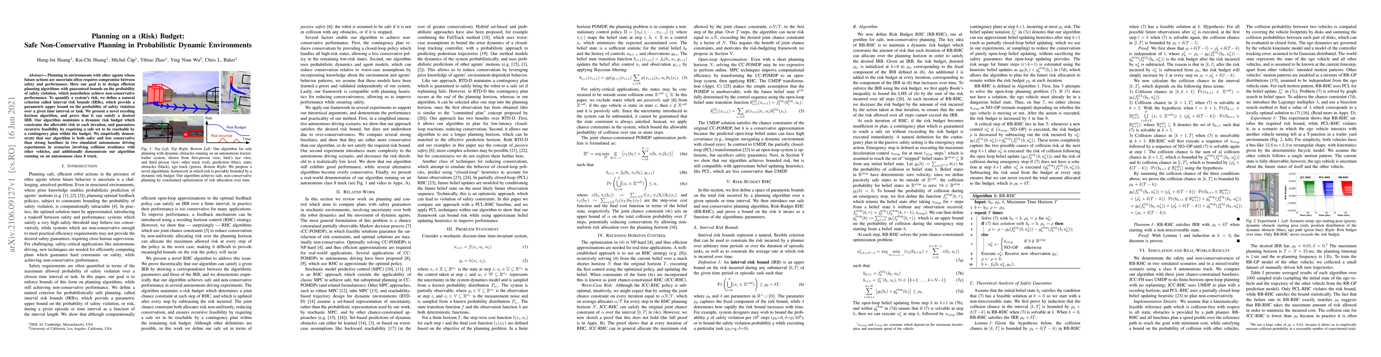 Planning in environments with other agents whose future actions are uncertain often requires compromise between safety and performance. Here our goal is to design efficient planning algorithms with guaranteed bounds on the probability of safety violation, which nonetheless achieve non-conservative performance. To quantify a system's risk, we define a natural criterion called interval risk bounds (IRBs), which provide a parametric upper bound on the probability of safety violation over a given time interval or task. We present a novel receding horizon algorithm, and prove that it can satisfy a desired IRB. Our algorithm maintains a dynamic risk budget which constrains the allowable risk at each iteration, and guarantees recursive feasibility by requiring a safe set to be reachable by a contingency plan within the budget. We empirically demonstrate that our algorithm is both safer and less conservative than strong baselines in two simulated autonomous driving experiments in scenarios involving collision avoidance with other vehicles, and additionally demonstrate our algorithm running on an autonomous class 8 truck.