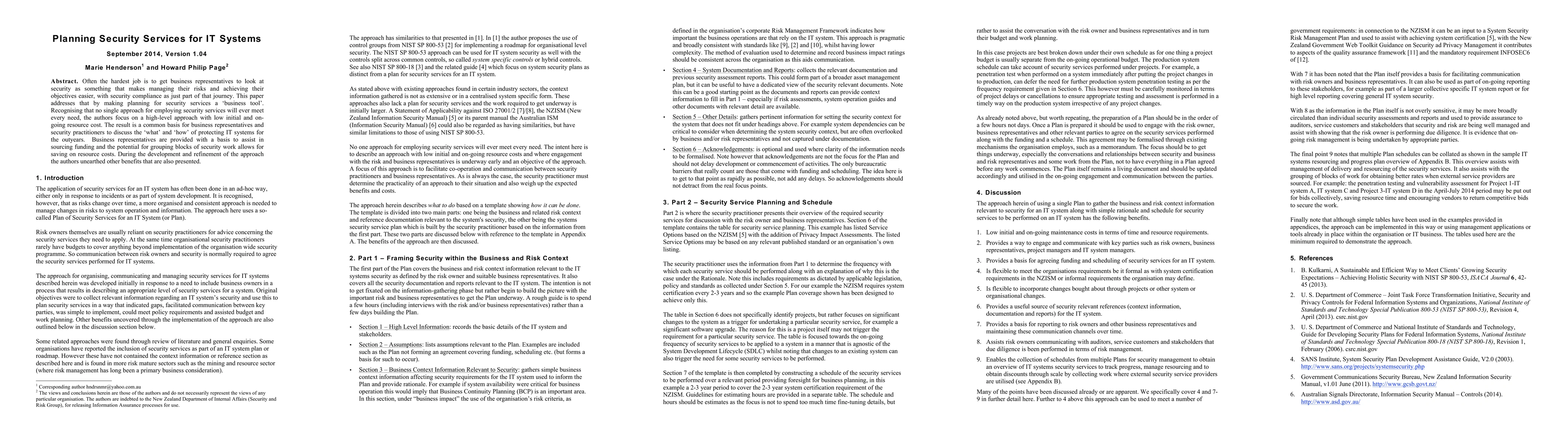 This paper aims to make security planning a 'business tool' for IT systems, helping business representatives understand its benefits in managing risks and achieving objectives. It addresses the challenge of getting business leaders to prioritize security compliance.