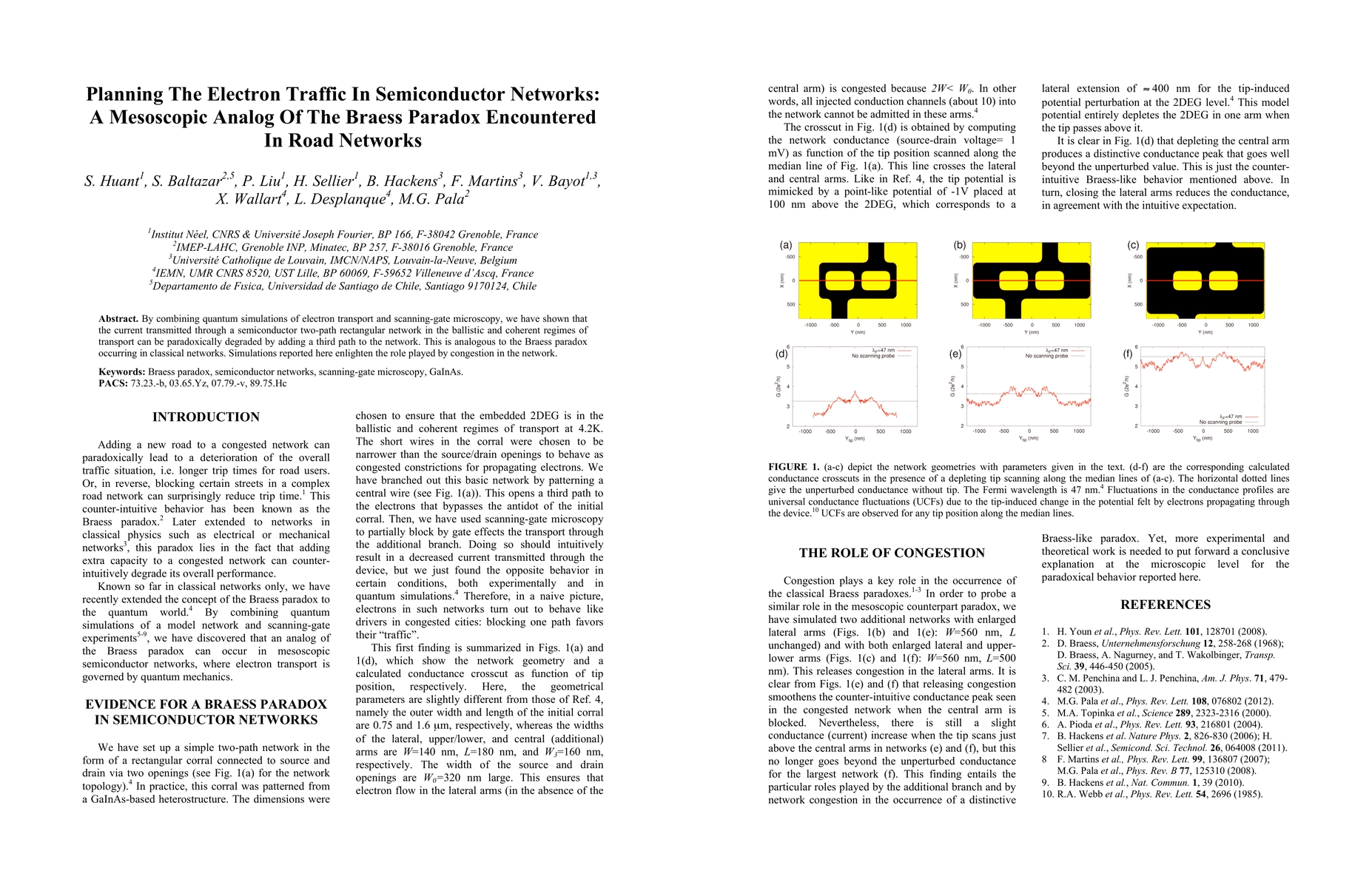 This paper demonstrates that adding a third path in a semiconductor network can paradoxically degrade the overall electron current flow, analogous to the Braess paradox in road networks, using quantum simulations and scanning-gate microscopy. The study highlights the impact of congestion on electron traffic in mesoscopic semiconductor networks.
