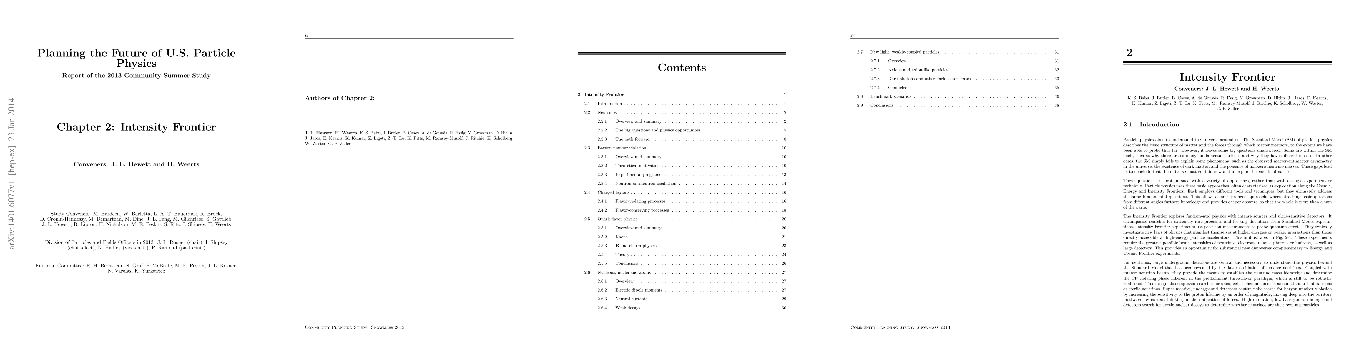 Summary: The Snowmass 2013 report outlines the future U.S. particle physics program focusing on the Intensity Frontier, which encompasses high-intensity beam experiments and rare process investigations, including neutrino studies, proton decay, and searches for new weakly-interacting particles.
