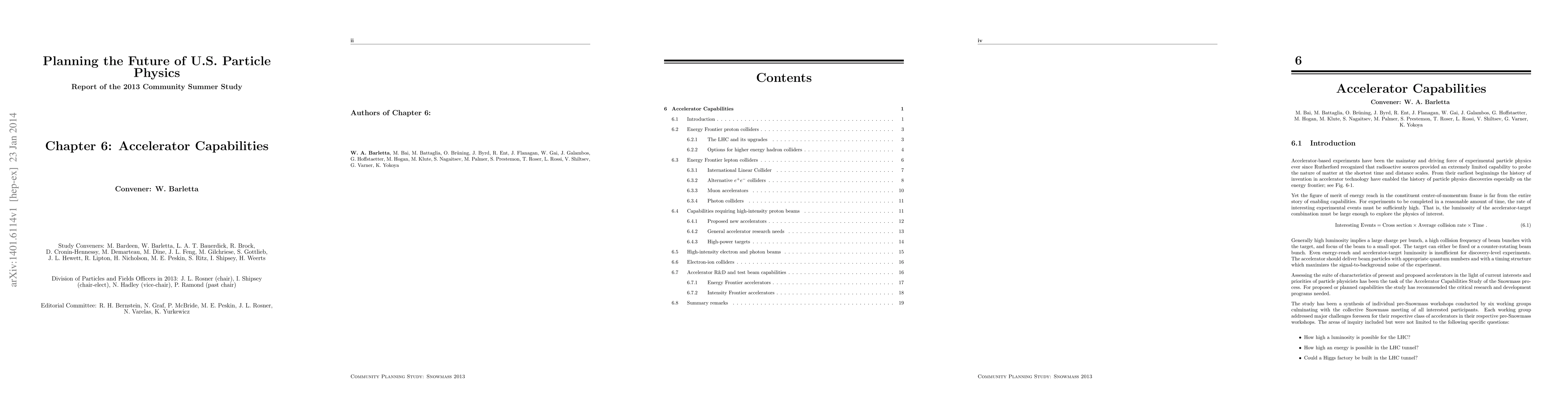 These reports present the results of the 2013 Community Summer Study of the APS Division of Particles and Fields ("Snowmass 2013") on the future program of particle physics in the U.S. Chapter 6, on Accelerator Capabilities, discusses the future progress of accelerator technology, including issues for high-energy hadron and lepton colliders, high-intensity beams, electron-ion colliders, and necessary R&D for future accelerator technologies.