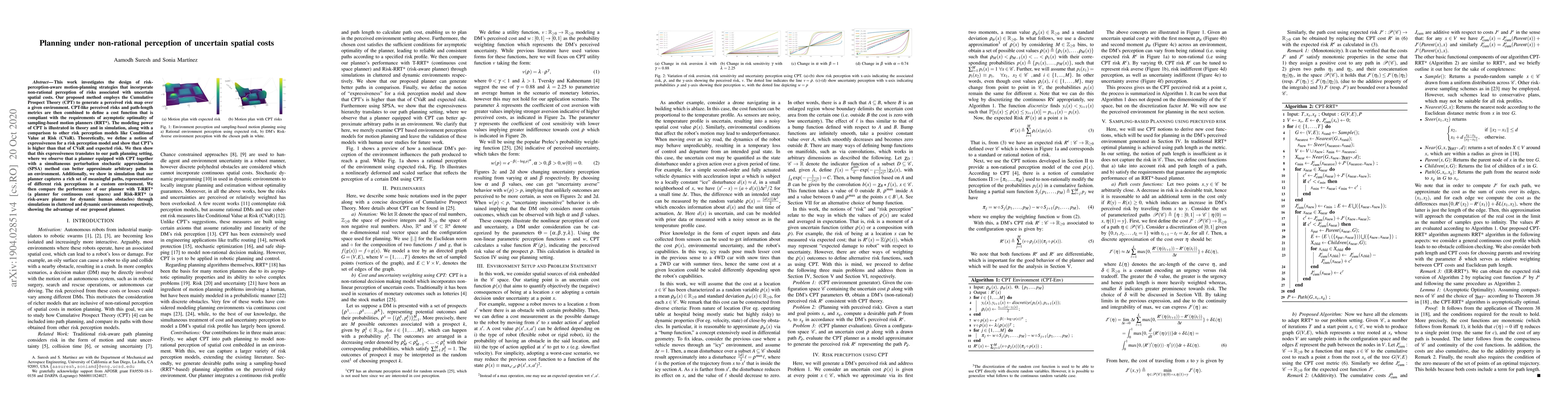 This paper proposes a motion-planning strategy that uses Cumulative Prospect Theory (CPT) to model non-rational risk perception, generating a perceived risk map and combining it with path-length metrics for optimal path planning. The method outperforms other risk perception models and traditional planners in simulations, demonstrating better path approximation and capturing a diverse set of meaningful paths.