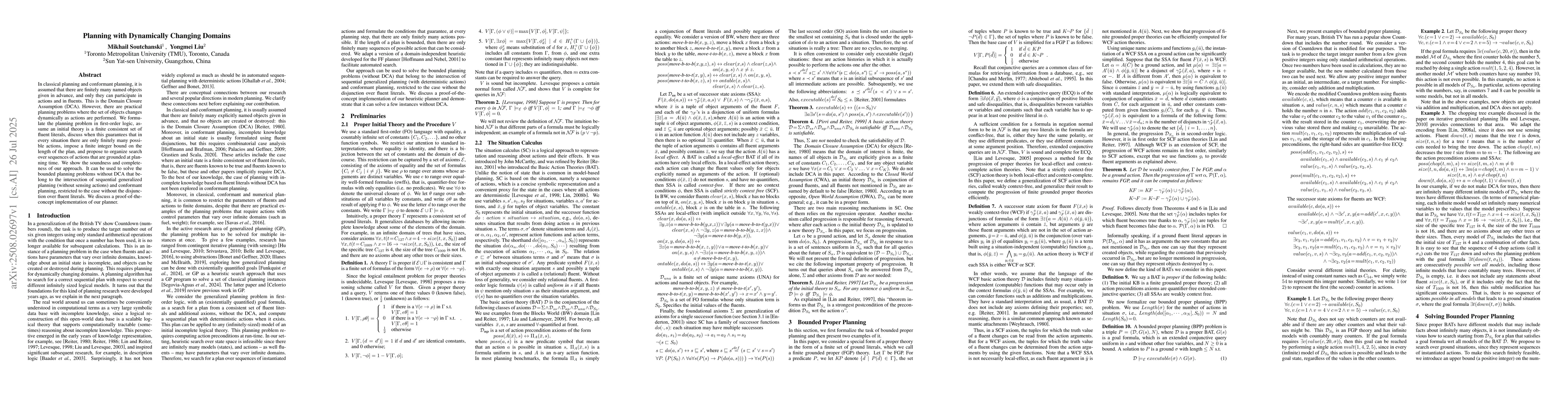 In classical planning and conformant planning, it is assumed that there are finitely many named objects given in advance, and only they can participate in actions and in fluents. This is the Domain Closure Assumption (DCA). However, there are practical planning problems where the set of objects changes dynamically as actions are performed; e.g., new objects can be created, old objects can be destroyed. We formulate the planning problem in first-order logic, assume an initial theory is a finite consistent set of fluent literals, discuss when this guarantees that in every situation there are only finitely many possible actions, impose a finite integer bound on the length of the plan, and propose to organize search over sequences of actions that are grounded at planning time. We show the soundness and completeness of our approach. It can be used to solve the bounded planning problems without DCA that belong to the intersection of sequential generalized planning (without sensing actions) and conformant planning, restricted to the case without the disjunction over fluent literals. We discuss a proof-of-the-concept implementation of our planner.