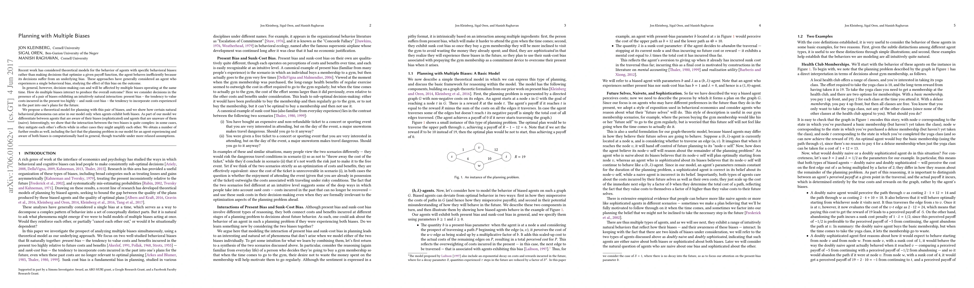 This study investigates how two behavioral biases - present bias and sunk-cost bias - interact to influence decision-making in planning, revealing complex interactions that can either mitigate or amplify each other's effects.