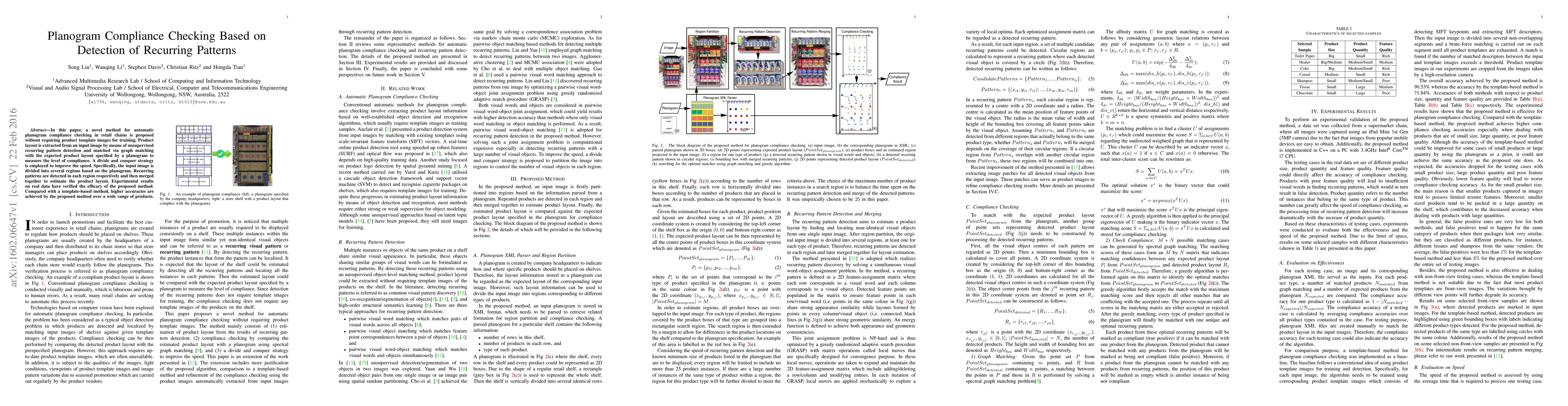 This paper introduces a new method for automatically checking retail planogram compliance using unsupervised recurring pattern detection, outperforming template-based methods in accuracy across various products.