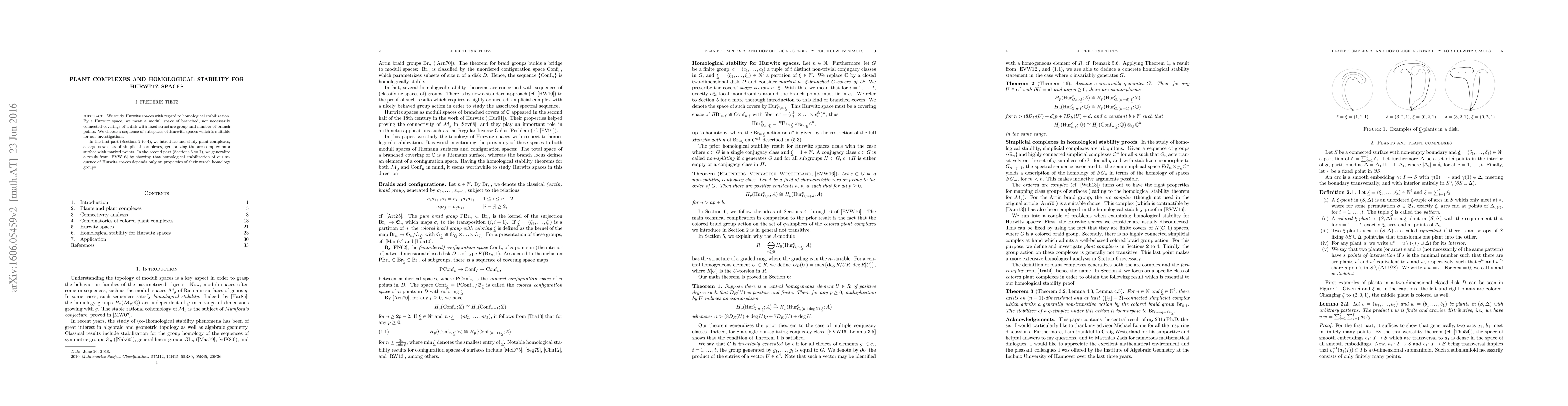 This paper investigates homological stabilization in Hurwitz spaces, which are moduli spaces of branched coverings. It introduces plant complexes, a new class of simplicial complexes, and generalizes a result showing that homological stabilization of Hurwitz spaces is determined by their zeroth homology groups.