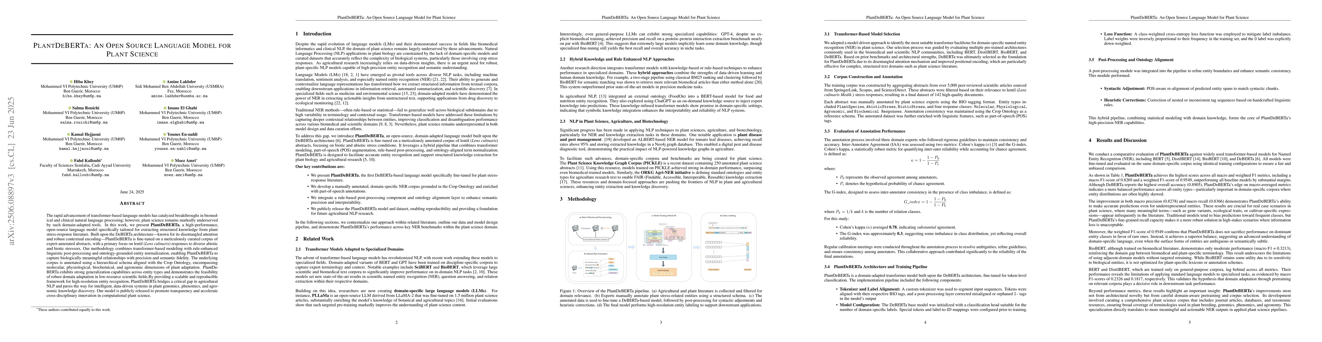 PlantBert is an open-source language model designed to extract detailed knowledge from plant stress research, using advanced transformer techniques tailored for plant science. It enables more precise understanding of plant responses, supporting data-driven advances in agriculture and genomics.