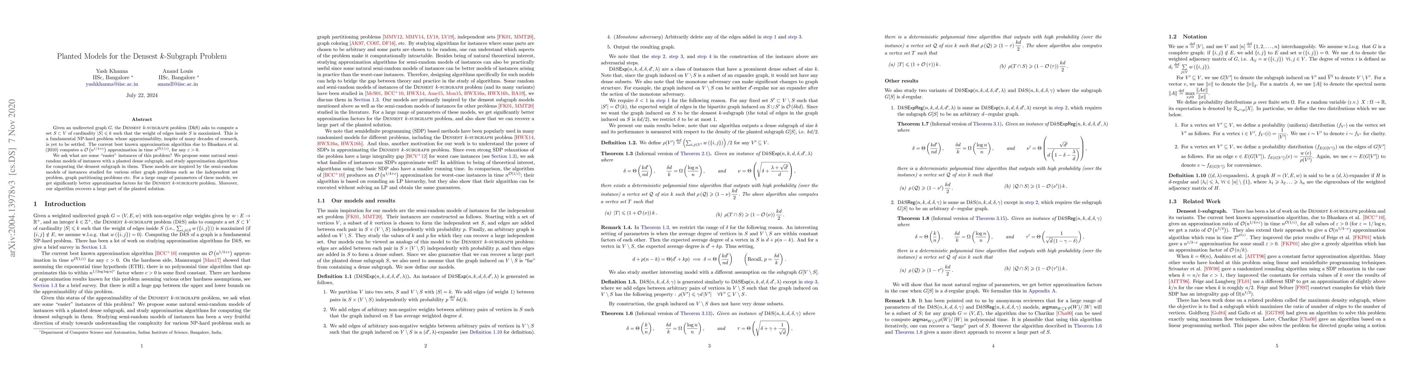 This paper proposes semi-random models for instances of the Densest $k$-subgraph problem, where a dense subgraph is "planted" within a graph. It demonstrates that under these models, better approximation algorithms perform significantly better compared to the general NP-hard problem, often recovering a large portion of the planted dense subgraph.