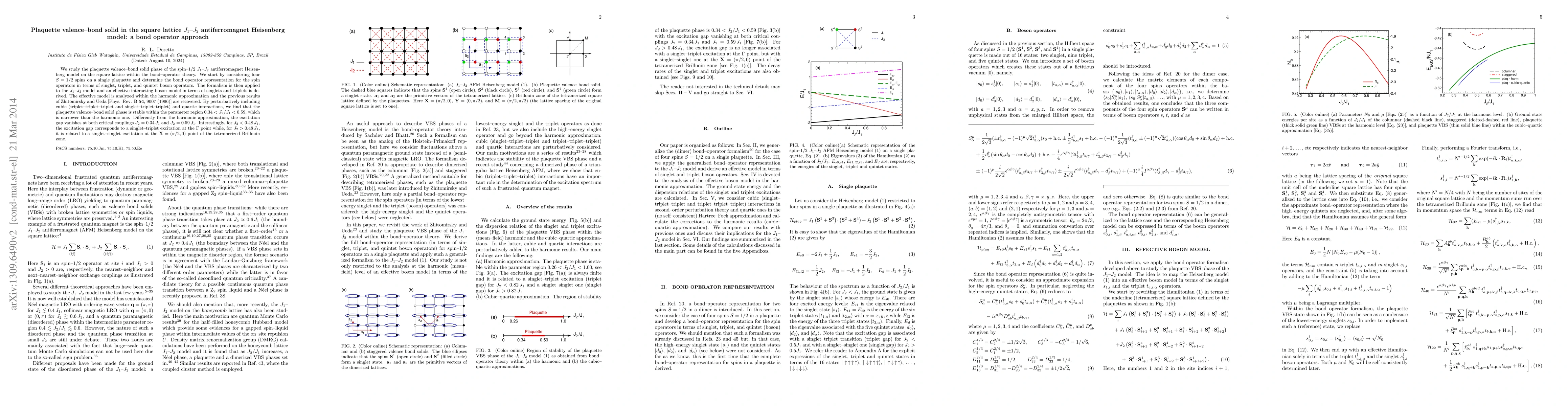 The novelty lies in the inclusion of cubic and quartic interactions in the bond-operator formalism, leading to a refined understanding of the excitation spectrum and phase boundaries of the plaquette valence-bond solid phase, which goes beyond the simpler harmonic approximation.