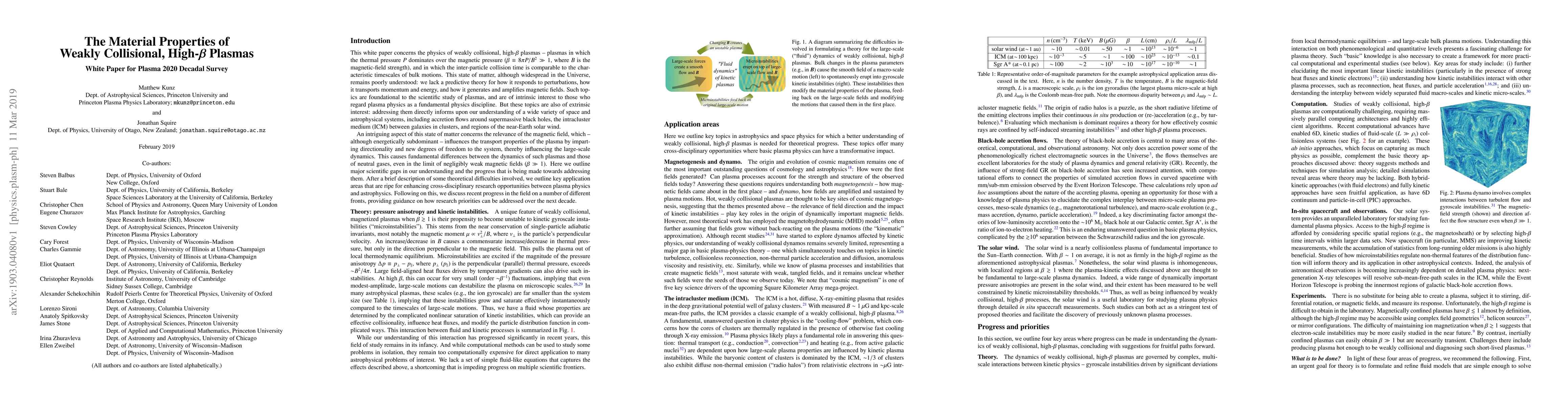 This paper addresses the poorly understood physics of weakly collisional, high-beta plasmas, emphasizing the need for predictive theories regarding their response to perturbations and their role in momentum and energy transport. It highlights the importance of advancing this field for understanding astrophysical phenomena such as accretion flows and the intracluster medium.