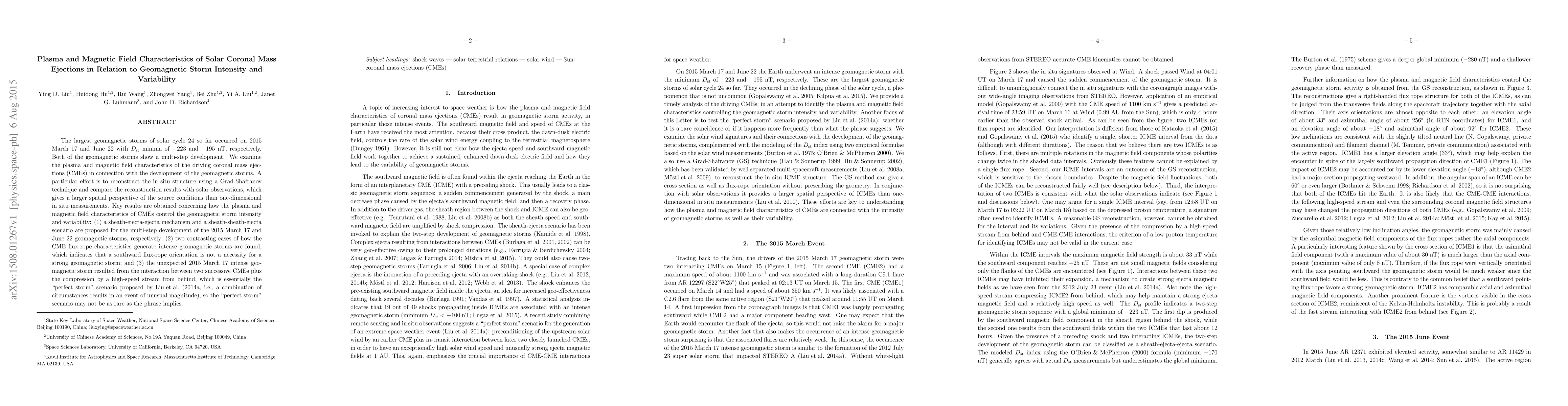 This paper examines the plasma and magnetic field characteristics of coronal mass ejections (CMEs) driving two significant geomagnetic storms, proposing mechanisms for their multi-step development and highlighting that intense geomagnetic storms can result from complex interactions rather than solely from southward flux-rope orientations.
