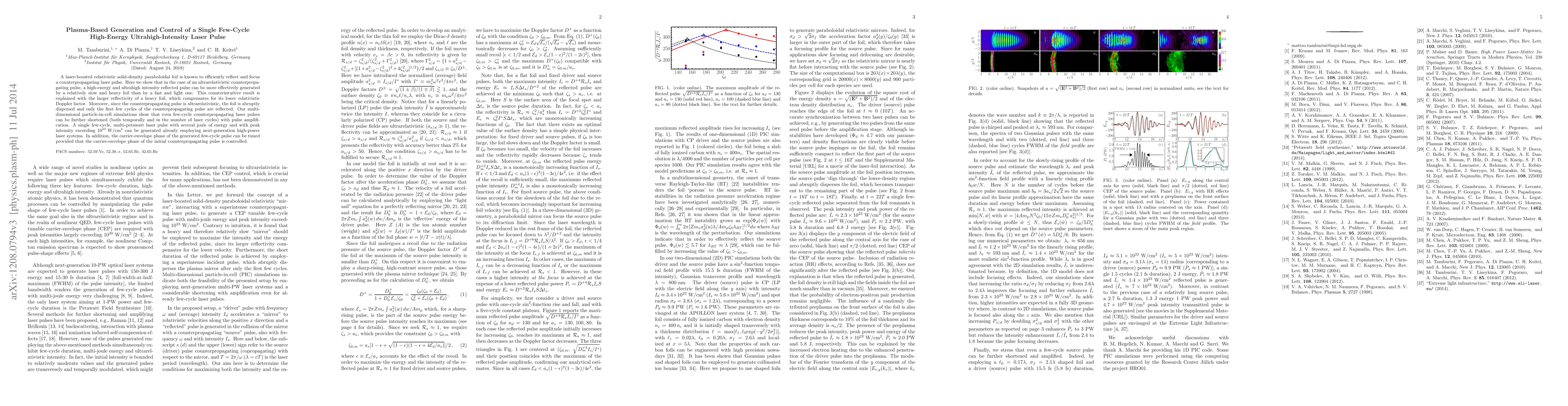 A laser-boosted relativistic solid-density paraboloidal foil is known to efficiently reflect and focus a counterpropagating laser pulse. Here we show that in the case of an ultrarelativistic counterpropagating pulse, a high-energy and ultrahigh intensity reflected pulse can be more effectively generated by a relatively slow and heavy foil than by a fast and light one. This counterintuitive result is explained with the larger reflectivity of a heavy foil, which compensates for its lower relativistic Doppler factor. Moreover, since the counterpropagating pulse is ultrarelativistic, the foil is abruptly dispersed and only the first few cycles of the counterpropagating pulse are reflected. Our multi-dimensional particle-in-cell simulations show that even few-cycle counterpropagating laser pulses can be further shortened (both temporally and in the number of laser cycles) with pulse amplification. A single few-cycle, multi-petawatt laser pulse with several joule of energy and with peak intensity exceeding 10^23 W/cm^2 can be generated already employing next-generation high-power laser systems. In addition, the carrier-envelope phase of the generated few-cycle pulse can be tuned provided that the carrier-envelope phase of the initial counterpropagating pulse is controlled.