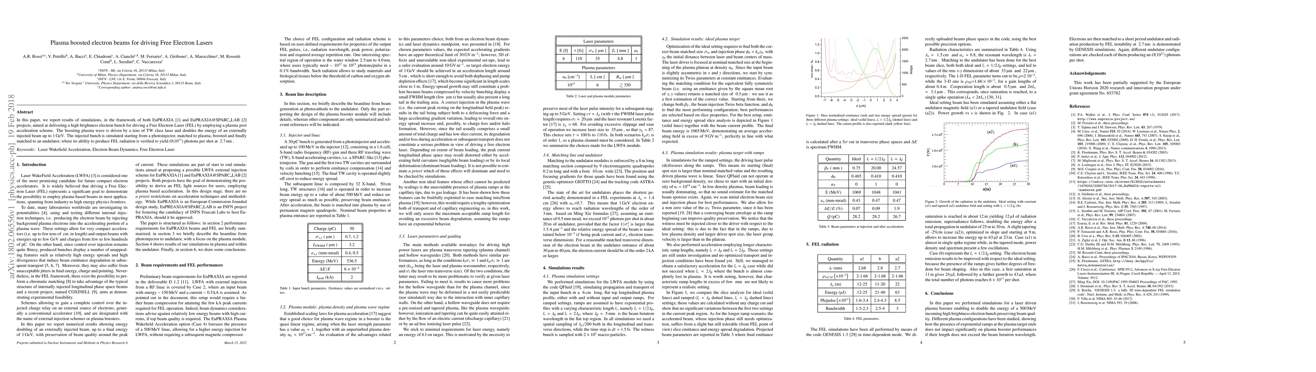 This paper presents simulations showing that a plasma-boosted electron beam, driven by a high-power laser, can double the energy of an externally injected beam up to 1 GeV, enabling it to produce Free Electron Laser radiation with $O(\num{e11})$ photons per shot at 2.7 nm. The study is conducted within the EuPRAXIA and EuPRAXIA@SPARC_LAB projects.