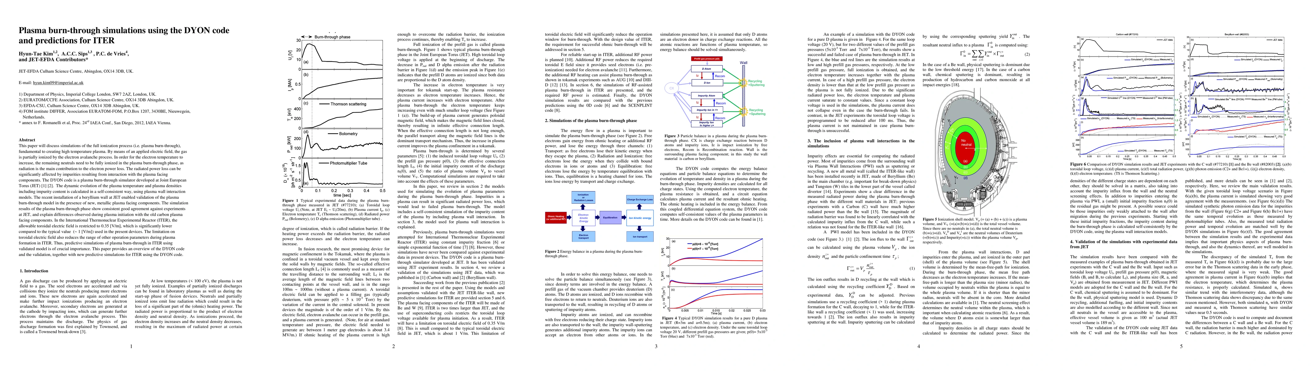 This paper discusses simulations of plasma burn-through using the DYON code, which accurately models the ionization process in plasmas, validated against JET experiments. Predictive simulations for ITER highlight the impact of reduced toroidal electric fields on plasma formation, emphasizing the importance of validated models for future fusion reactors.
