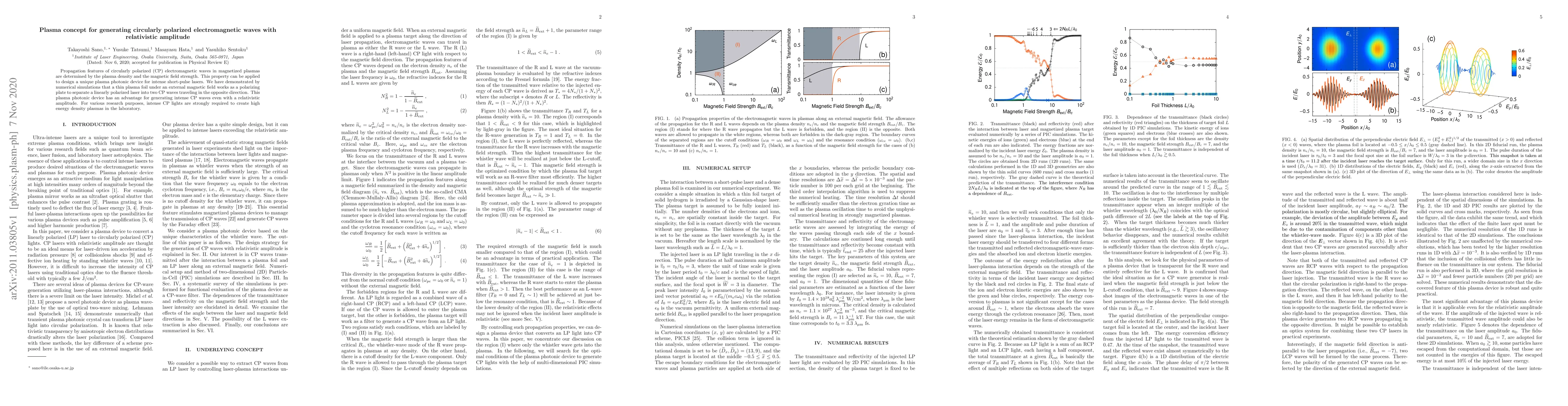 This paper explores the propagation of circularly polarized electromagnetic waves in magnetized plasmas, demonstrating through simulations that a thin plasma foil under an external magnetic field can convert linearly polarized laser light into intense, oppositely traveling circularly polarized waves, useful for high-energy plasma research.