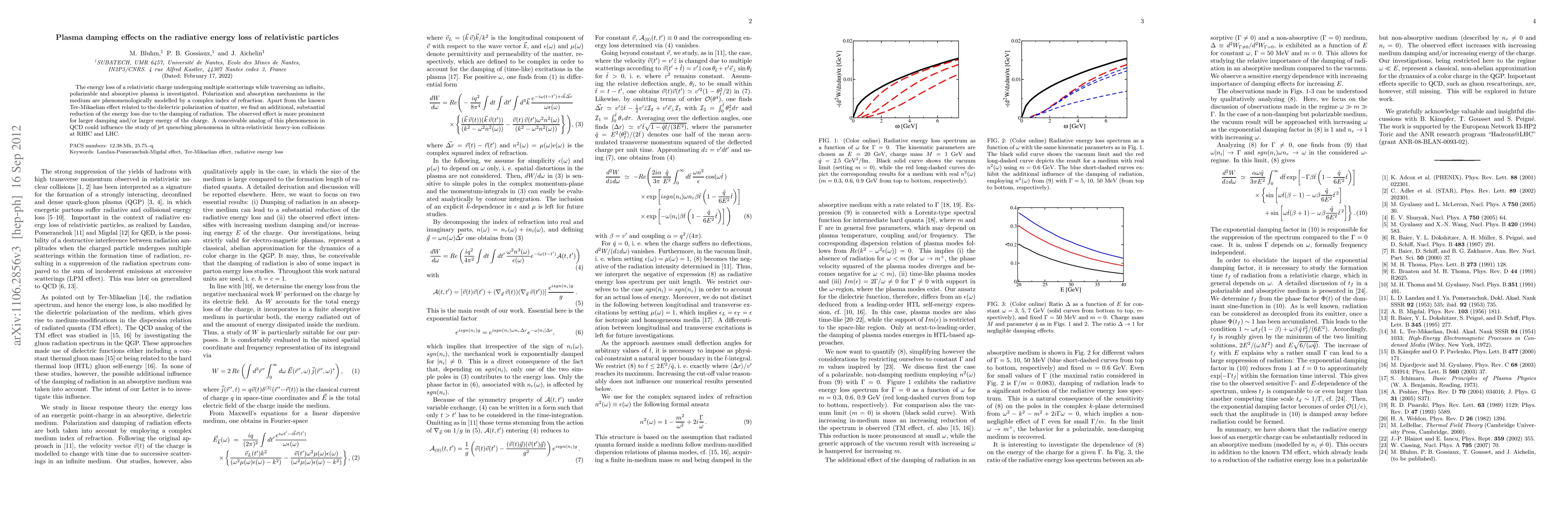 This paper investigates the energy loss of relativistic particles through multiple scatterings in a polarizable plasma, revealing a significant reduction in radiative energy loss due to plasma damping. The effect is more pronounced with higher damping and particle energy, potentially impacting studies of jet quenching in high-energy heavy-ion collisions.