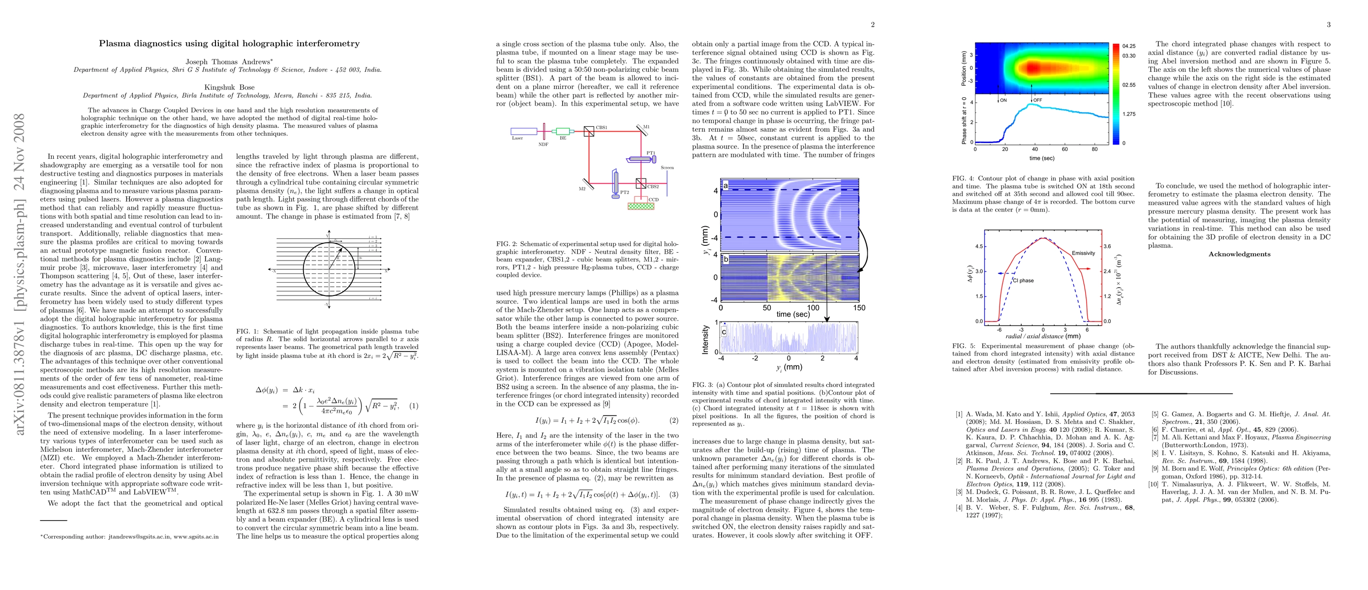 Summary: This paper utilizes digital holographic interferometry, leveraging advanced Charge Coupled Devices and high-resolution holographic techniques, to diagnose high-density plasma, achieving accurate measurements of electron density that correlate with other diagnostic methods.