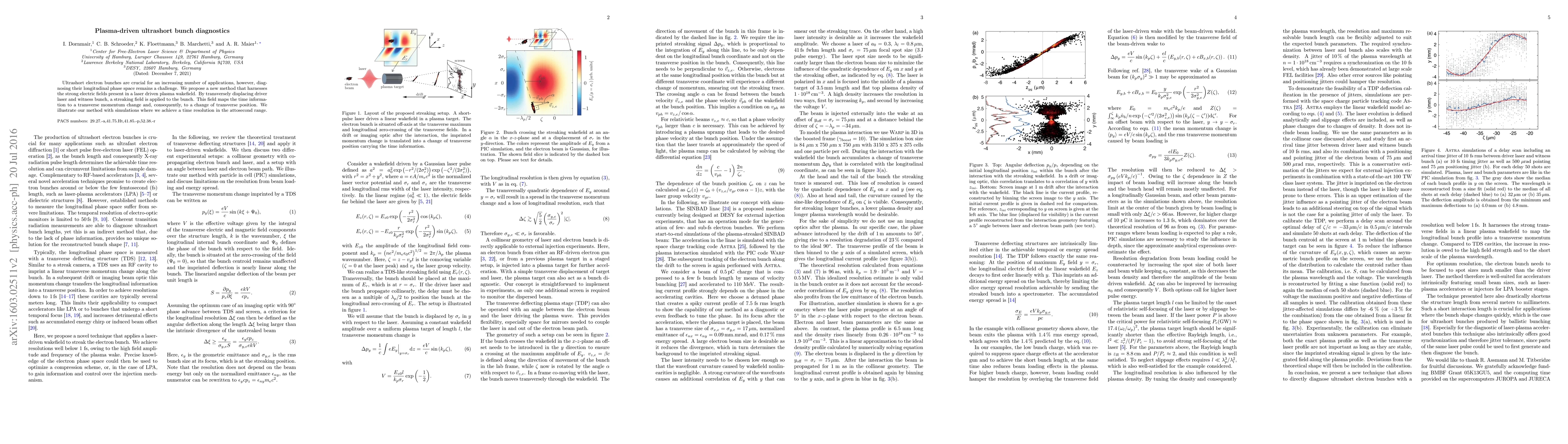 This research introduces a novel method using plasma-driven laser wakefields to diagnose ultrashort electron bunches' longitudinal phase space. By displacing the driver laser and witness bunch to create a streaking field, the technique achieves attosecond-range time resolution in simulations.