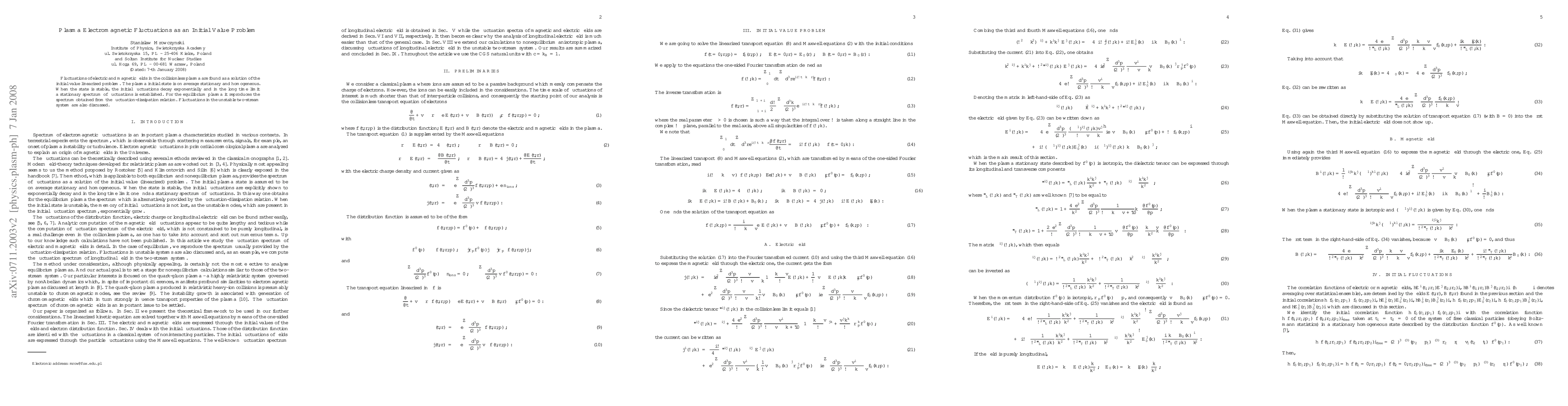 The research presents a method to obtain a spectrum of electromagnetic fluctuations in plasmas as an initial value problem by linearizing the transport equation around a stationary and homogeneous average state, solving it along with Maxwell's equations using a one-sided Fourier transformation, and expressing the time-dependent fluctuation spectrum through initial fluctuations.