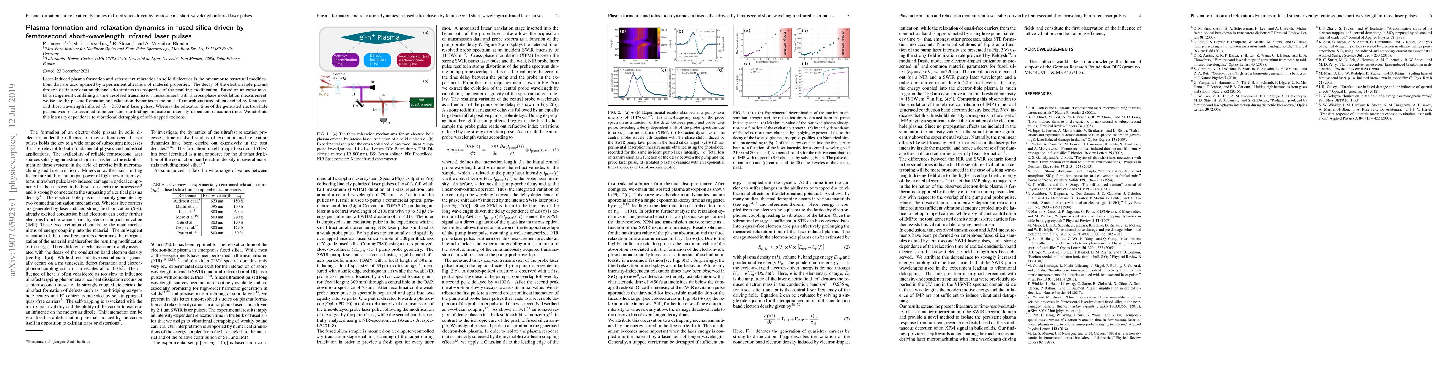 This study investigates the plasma formation and relaxation dynamics in fused silica using femtosecond infrared laser pulses, revealing an intensity-dependent relaxation time attributed to the vibrational detrapping of self-trapped excitons, contrary to previous assumptions of a constant relaxation time.