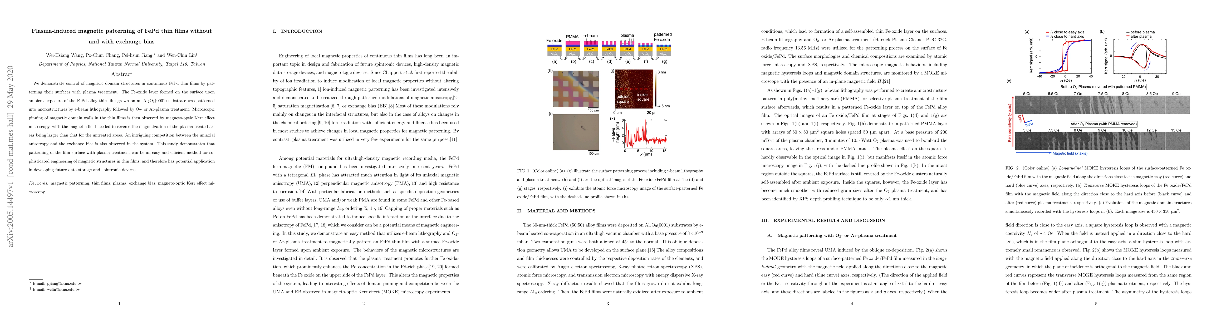 This study shows that plasma treatment can precisely pattern magnetic domain structures in FePd thin films, enhancing their magnetic anisotropy and pinning domain walls. The method offers a simple route for advanced magnetic engineering, with implications for future data-storage and spintronic devices.