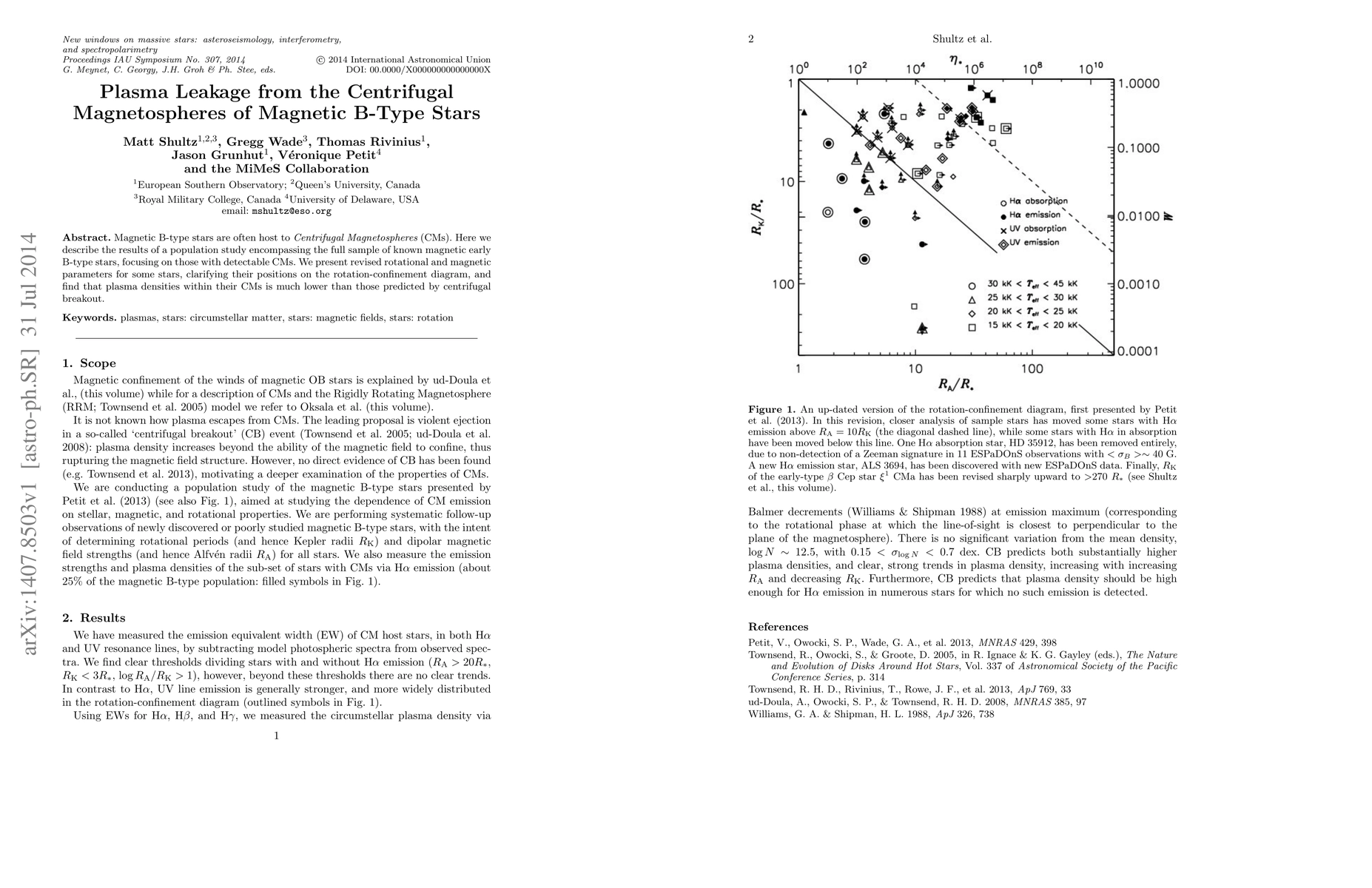 Magnetic B-type stars are often host to Centrifugal Magnetospheres (CMs). Here we describe the results of a population study encompassing the full sample of known magnetic early B-type stars, focusing on those with detectable CMs. We present revised rotational and magnetic parameters for some stars, clarifying their positions on the rotation-confinement diagram, and? find that plasma densities within their CMs are much lower than those predicted by centrifugal breakout.