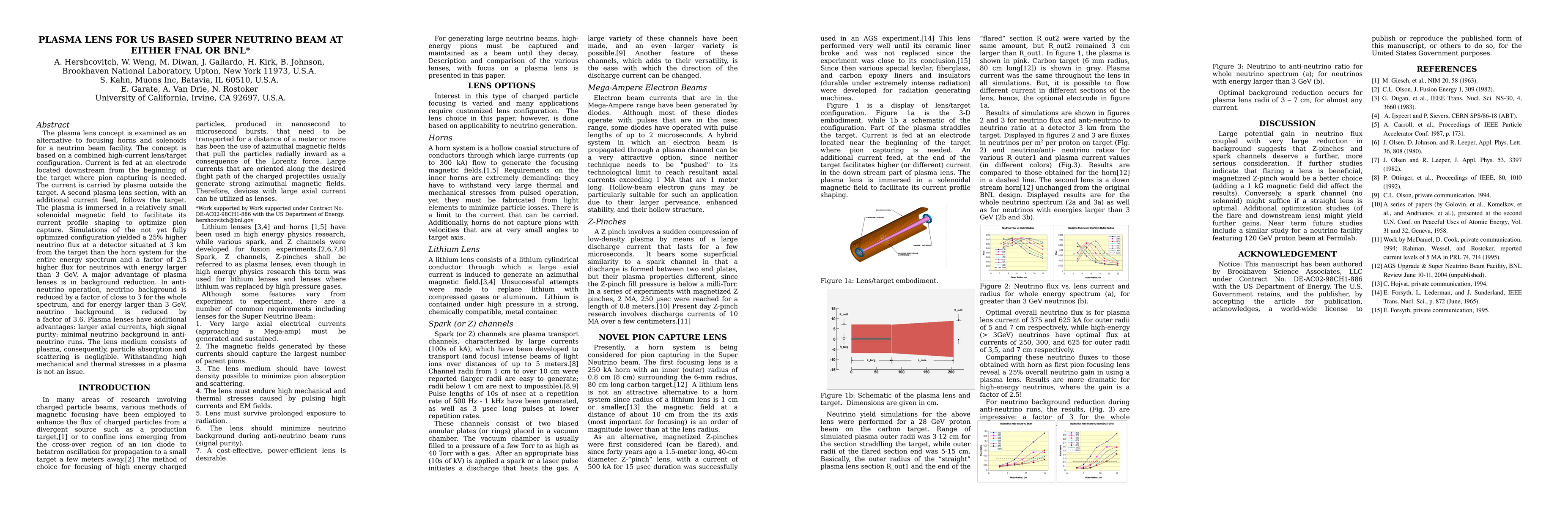 A plasma lens design offers a 25% higher neutrino flux than traditional horns at 3 km, with significant reductions in background radiation.