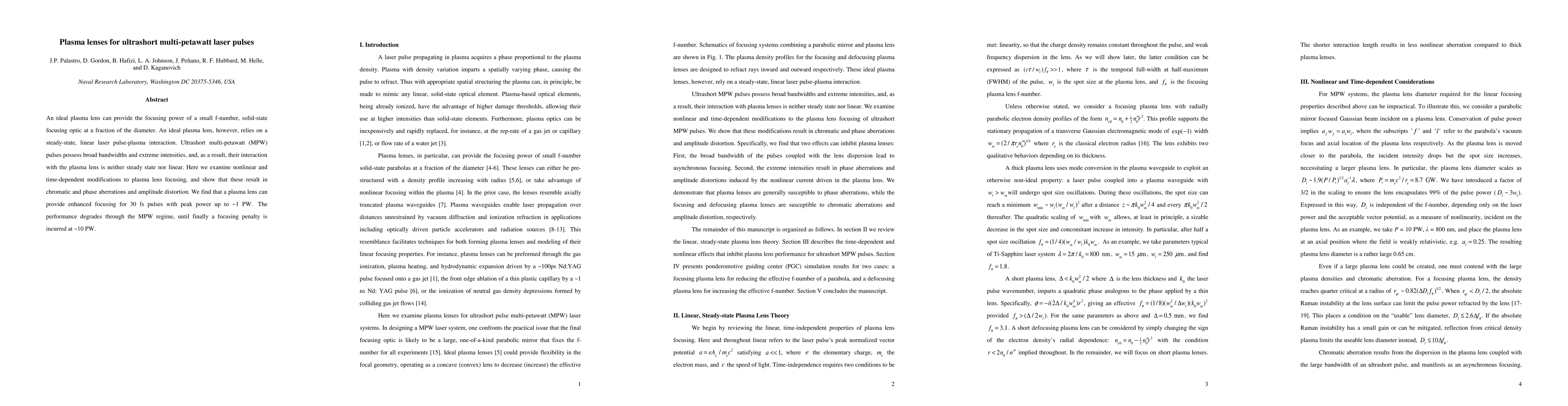 This paper investigates the focusing capabilities of plasma lenses for ultrashort multi-petawatt laser pulses, revealing that while they can enhance focusing for 30 fs pulses up to ~1 PW, performance degrades and a focusing penalty occurs at ~10 PW due to nonlinear and time-dependent interactions.