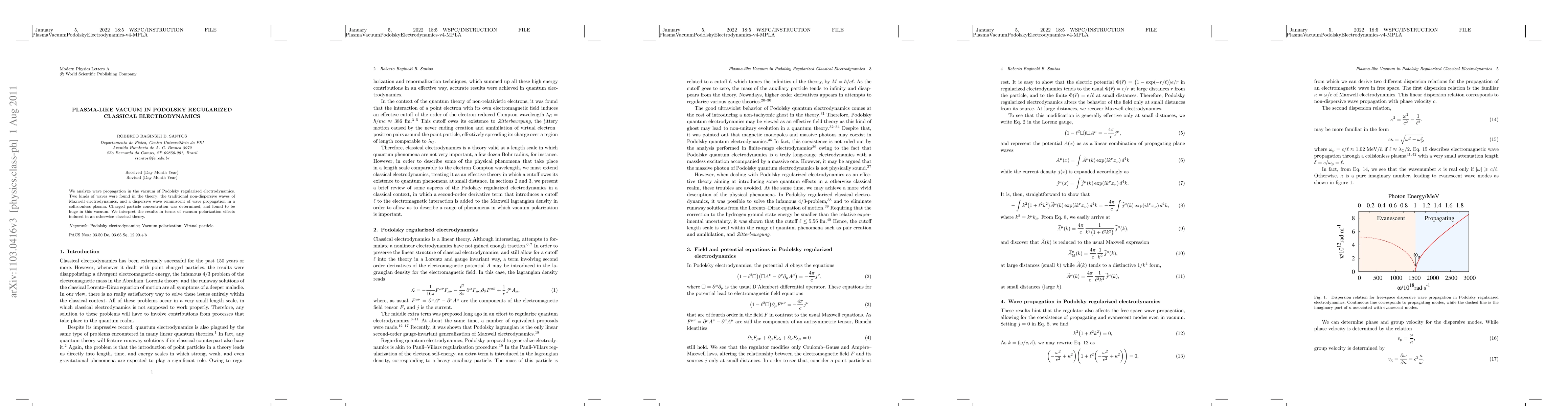 We analyze wave propagation in the vacuum of Podolsky regularized electrodynamics. Two kinds of waves were found in the theory: the traditional non-dispersive waves of Maxwell electrodynamics, and a dispersive wave reminiscent of wave propagation in a collisionless plasma. Charged particle concentration was determined, and found to be huge in this vacuum. We interpret the results in terms of vacuum polarization effects induced in an otherwise classical theory.