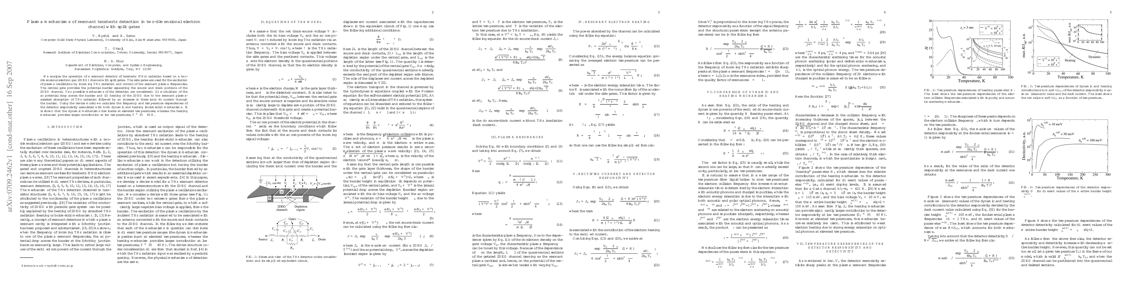 This research investigates a resonant terahertz detector based on a 2DEG channel with split gates, where plasma oscillations are excited by incoming THz radiation. The study considers two detection mechanisms: modulation of the ac potential drop and heating of the 2DEG via resonant absorption, showing dynamic mechanisms prevail at higher temperatures while heating dominates at low temperatures (35-40 K).