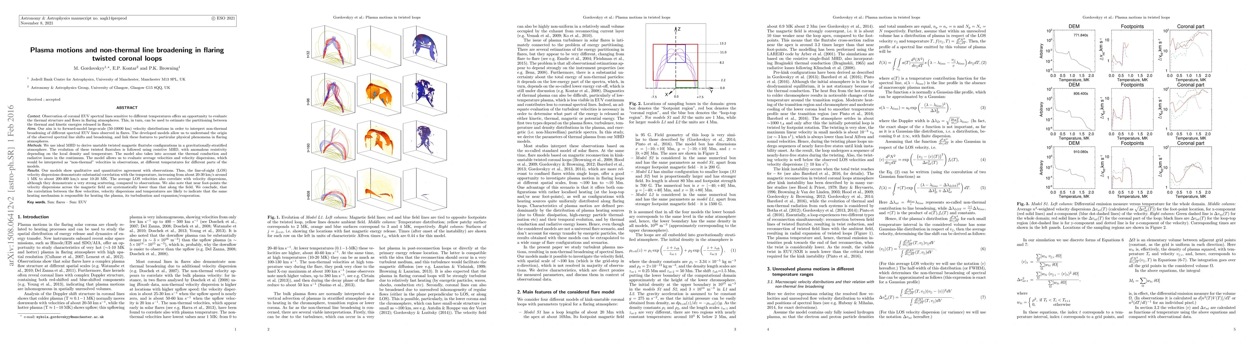 Researchers developed a model to study plasma motions in flaring coronal loops, finding correlations between flow velocities, temperature, and non-thermal line broadening, suggesting a shared heating mechanism.