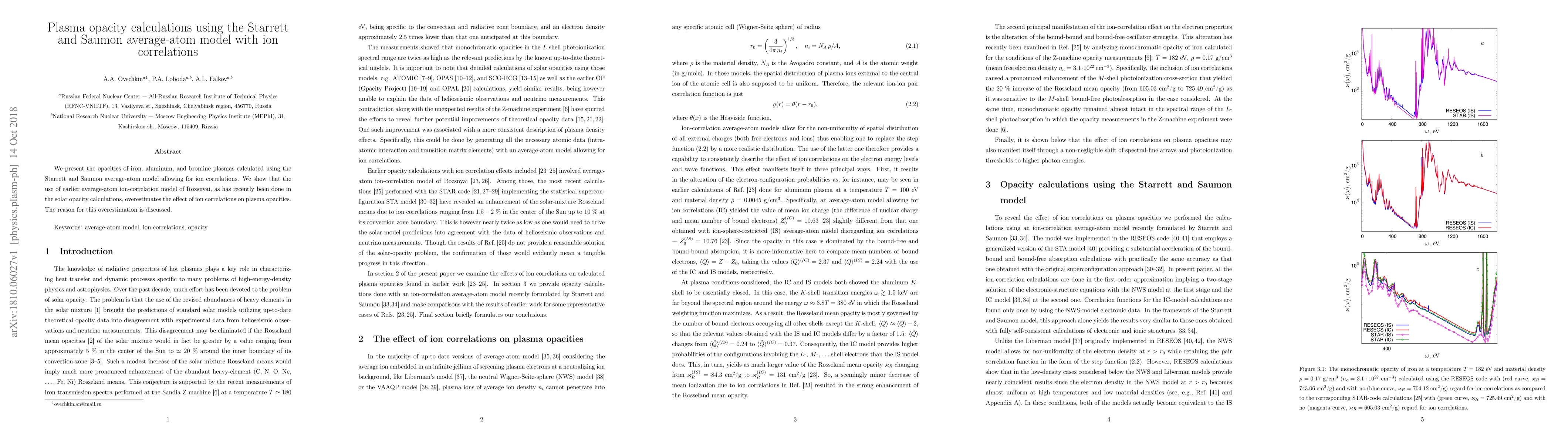 This paper calculates plasma opacities for iron, aluminum, and bromine using the Starrett and Saumon average-atom model, which considers ion correlations. It finds that the earlier model by Rozsnyai overestimates the impact of ion correlations on plasma opacity, providing a detailed discussion of the reasons for this discrepancy.