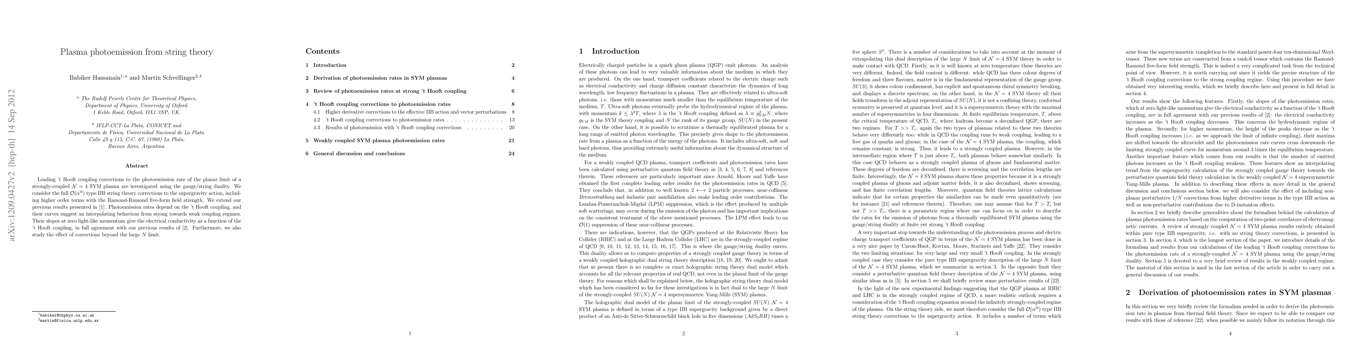 Leading 't Hooft coupling corrections to the photoemission rate of the planar limit of a strongly-coupled {\cal {N}}=4 SYM plasma are investigated using the gauge/string duality. We consider the full order \alpha'^3 type IIB string theory corrections to the supergravity action, including higher order terms with the Ramond-Ramond five-form field strength. We extend our previous results presented in arXiv:1110.0526. Photoemission rates depend on the 't Hooft coupling, and their curves suggest an interpolating behaviour from strong towards weak coupling regimes. Their slopes at zero light-like momentum give the electrical conductivity as a function of the 't Hooft coupling, in full agreement with our previous results of arXiv:1108.6306. Furthermore, we also study the effect of corrections beyond the large N limit.