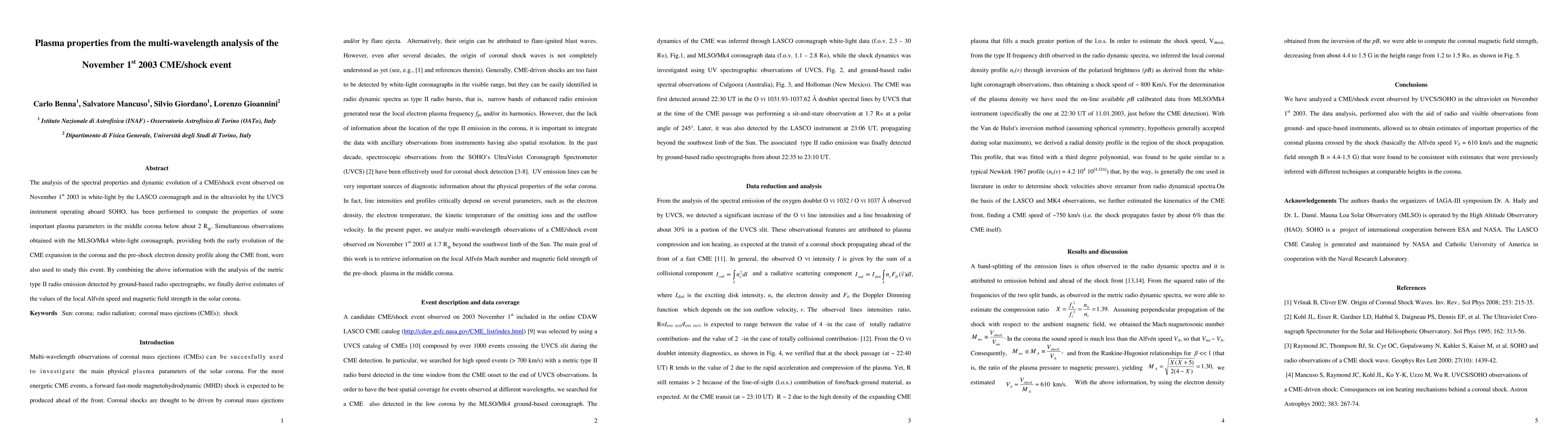 Researchers analyzed a 2003 CME/shock event to estimate Alfvén speed and magnetic field strength in the solar corona, providing insights into plasma properties.