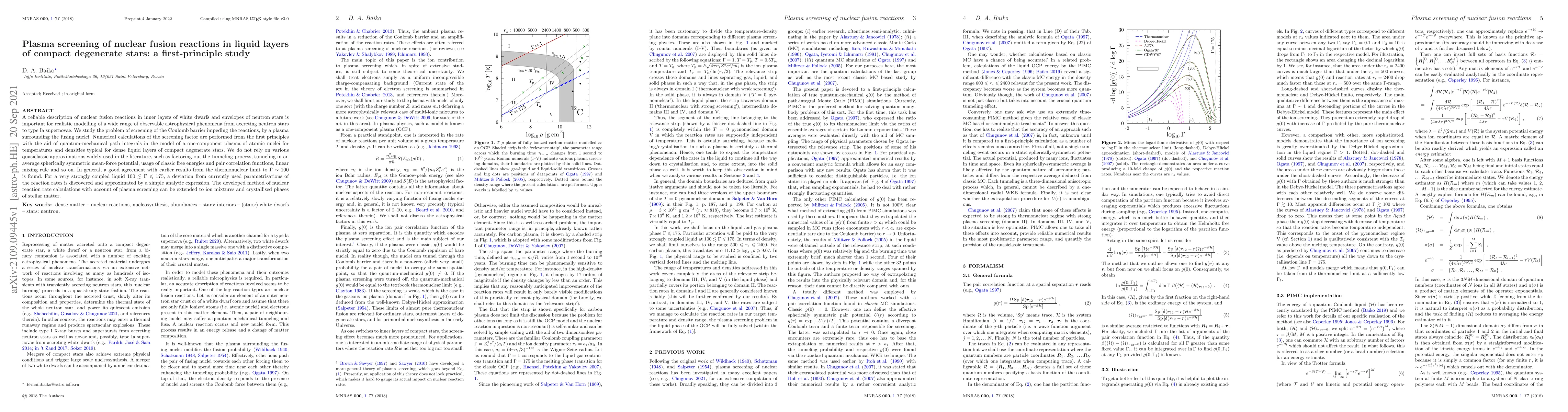 This study investigates the screening of nuclear fusion reactions in dense liquid layers of compact degenerate stars using quantum-mechanical methods, finding a deviation from existing parametrisations for strongly coupled liquids and proposing a new analytic expression. The developed approach can be applied to ion mixtures and crystallised stellar matter.