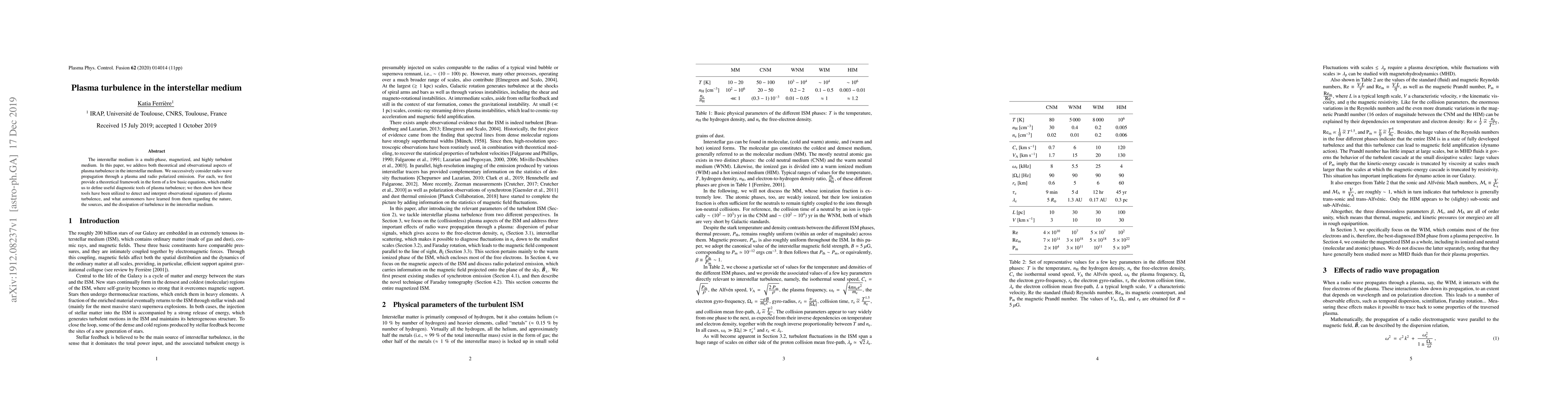 This paper explores theoretical and observational aspects of plasma turbulence in the interstellar medium, developing diagnostic tools to interpret radio wave propagation and polarized emission, and revealing insights into turbulence's nature, sources, and dissipation.