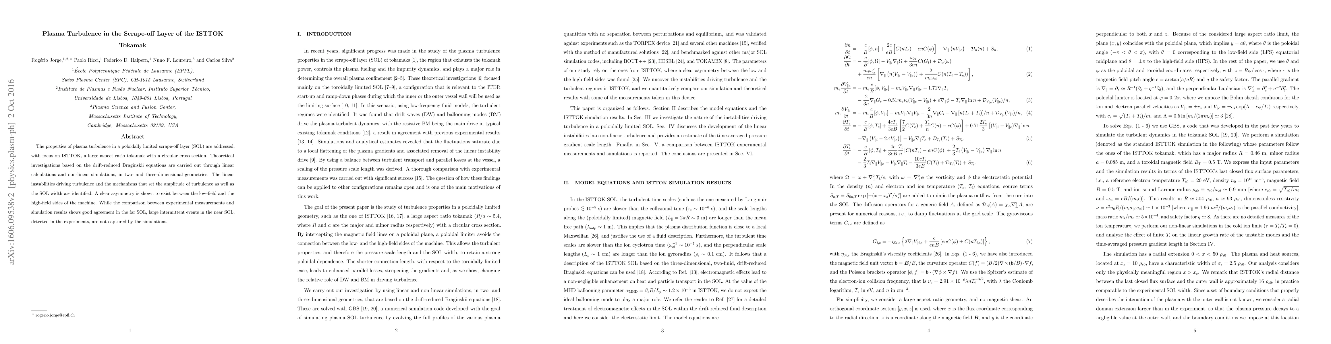 This paper investigates plasma turbulence in the scrape-off layer (SOL) of the ISTTOK tokamak using theoretical and simulation methods based on drift-reduced Braginskii equations. It identifies linear instabilities driving turbulence and mechanisms determining turbulence amplitude and SOL width, revealing asymmetry between low-field and high-field sides, and compares simulation results with experimental measurements.