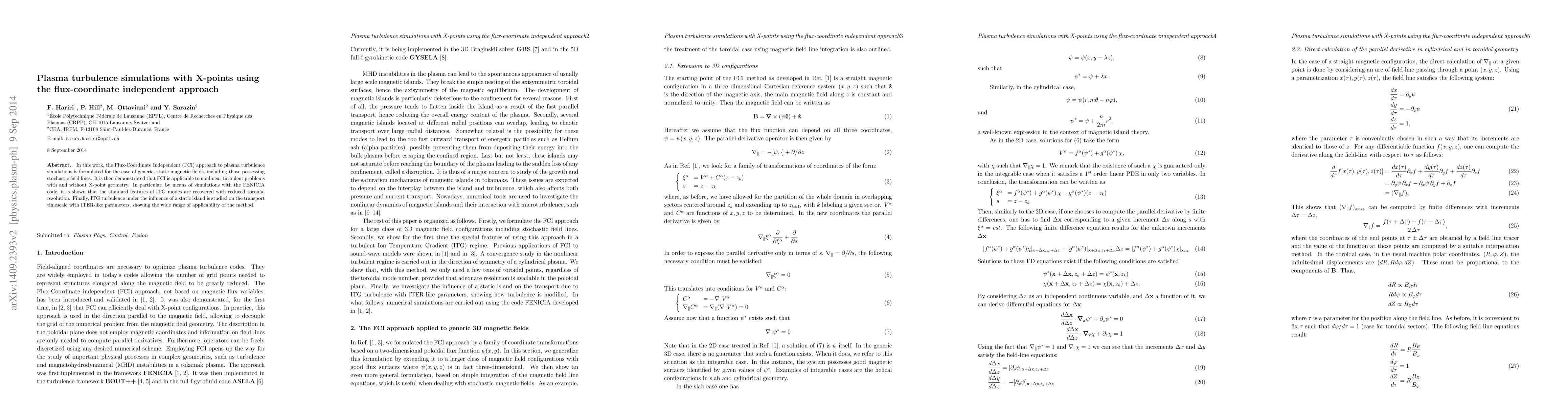 This paper formulates the Flux-Coordinate Independent (FCI) approach to plasma turbulence simulations for static magnetic fields, including those with stochastic field lines. The FCI method is shown to effectively model ITG modes and turbulence influenced by static islands, demonstrating its applicability to nonlinear turbulent problems with X-point geometry.