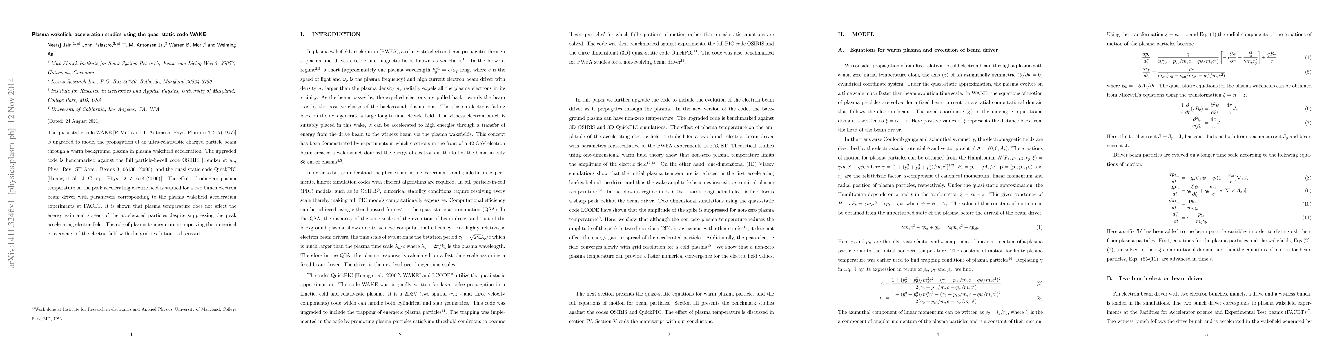 The upgraded quasi-static code WAKE models ultra-relativistic beams in plasma wakefield acceleration, showing that plasma temperature suppresses peak electric fields but does not affect particle energy gain and spread. The code's improved convergence with grid resolution is also discussed.