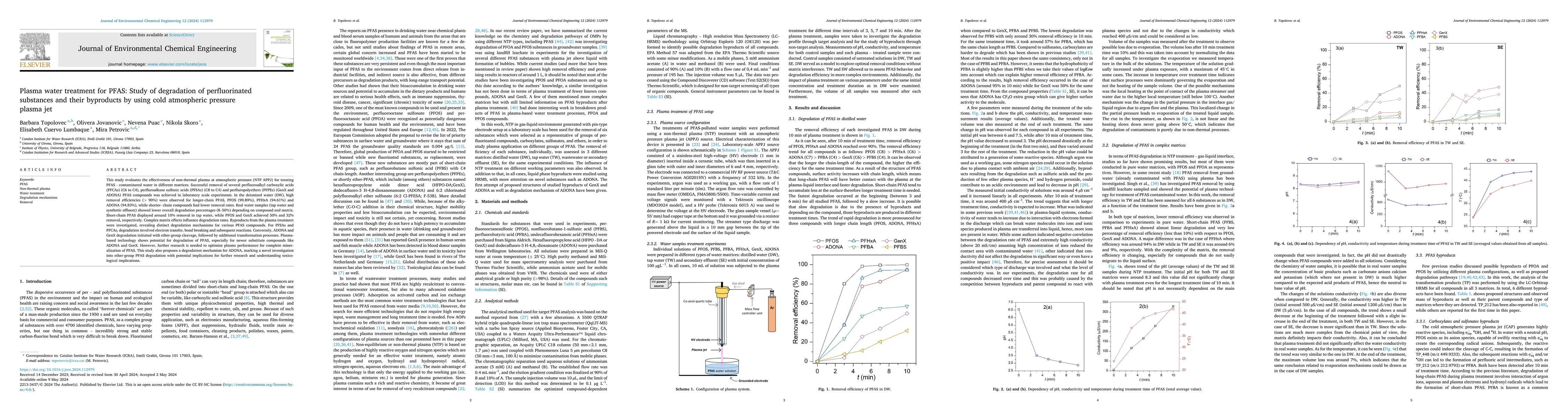 This study demonstrates that non-thermal atmospheric pressure plasma effectively degrades various PFAS compounds in water, identifying distinct degradation pathways for different PFAS types and proposing a novel mechanism for ether-group PFAS. Further optimization is needed to achieve complete mineralization.