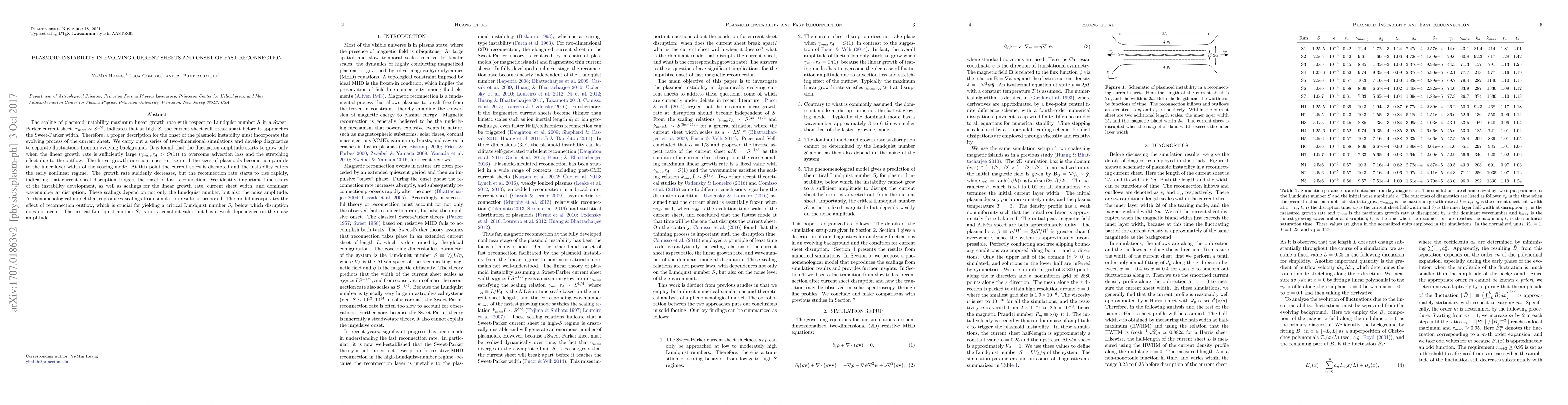 This paper investigates the plasmoid instability in evolving current sheets, finding that the maximum linear growth rate scales as $\gamma_{max}\sim S^{1/4}$. Simulations reveal that fluctuations grow only when the linear growth rate exceeds convective losses, leading to current sheet disruption and nonlinear saturation. The study proposes a phenomenological model that accounts for reconnection outflow and identifies a critical Lundquist number $S_{c}$ dependent on noise amplitude.