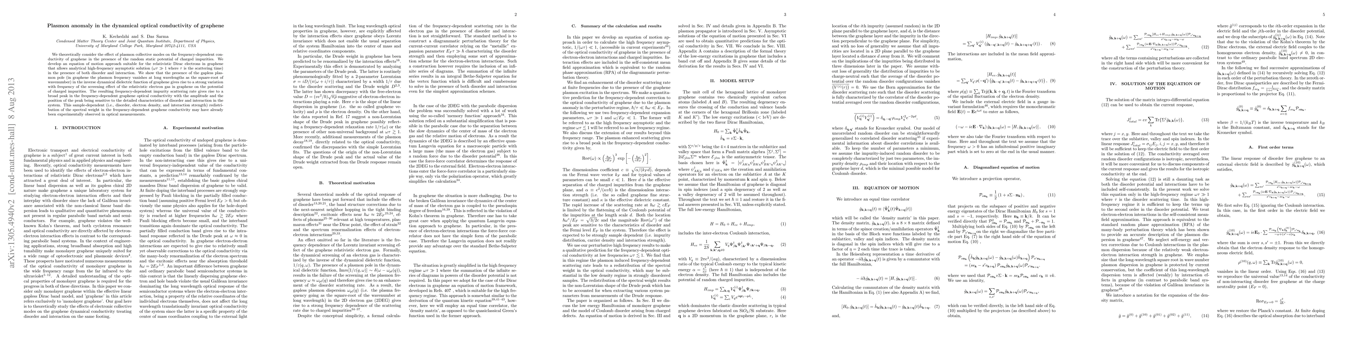 Researchers found that plasmons in graphene affect its optical conductivity, causing a broad peak in frequency-dependent conductivity with characteristics sensitive to disorder and interaction. This may have already been observed experimentally.