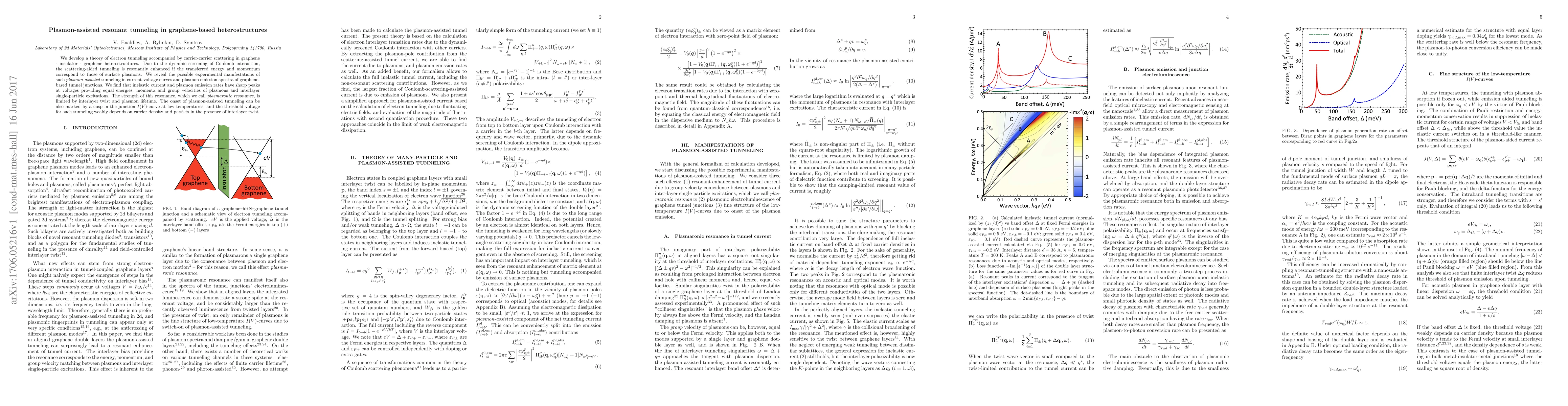 This paper develops a theoretical framework for plasmon-assisted resonant tunneling in graphene-based heterostructures, showing that dynamic screening enhances tunneling when energy and momentum match surface plasmons. Experimental signatures include sharp peaks in current and plasmon emission rates, and a cusp in $I(V)$-curves at low temperatures.