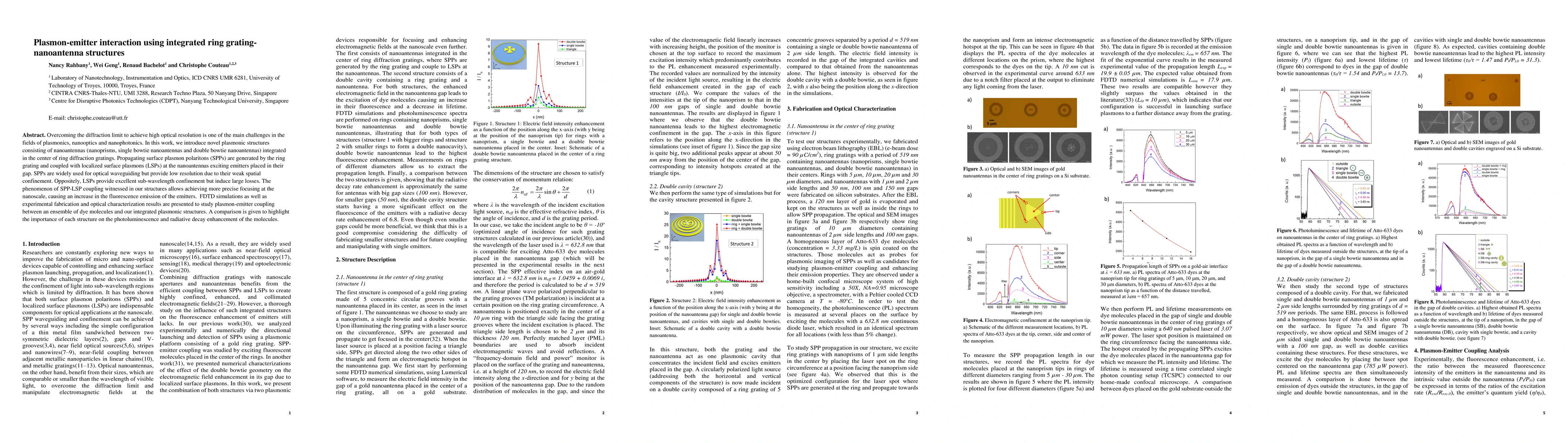 Researchers developed a new plasmonic structure that combines ring gratings with nanoantennas to enhance fluorescence emission of emitters, overcoming the diffraction limit at the nanoscale.